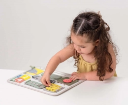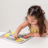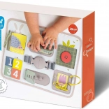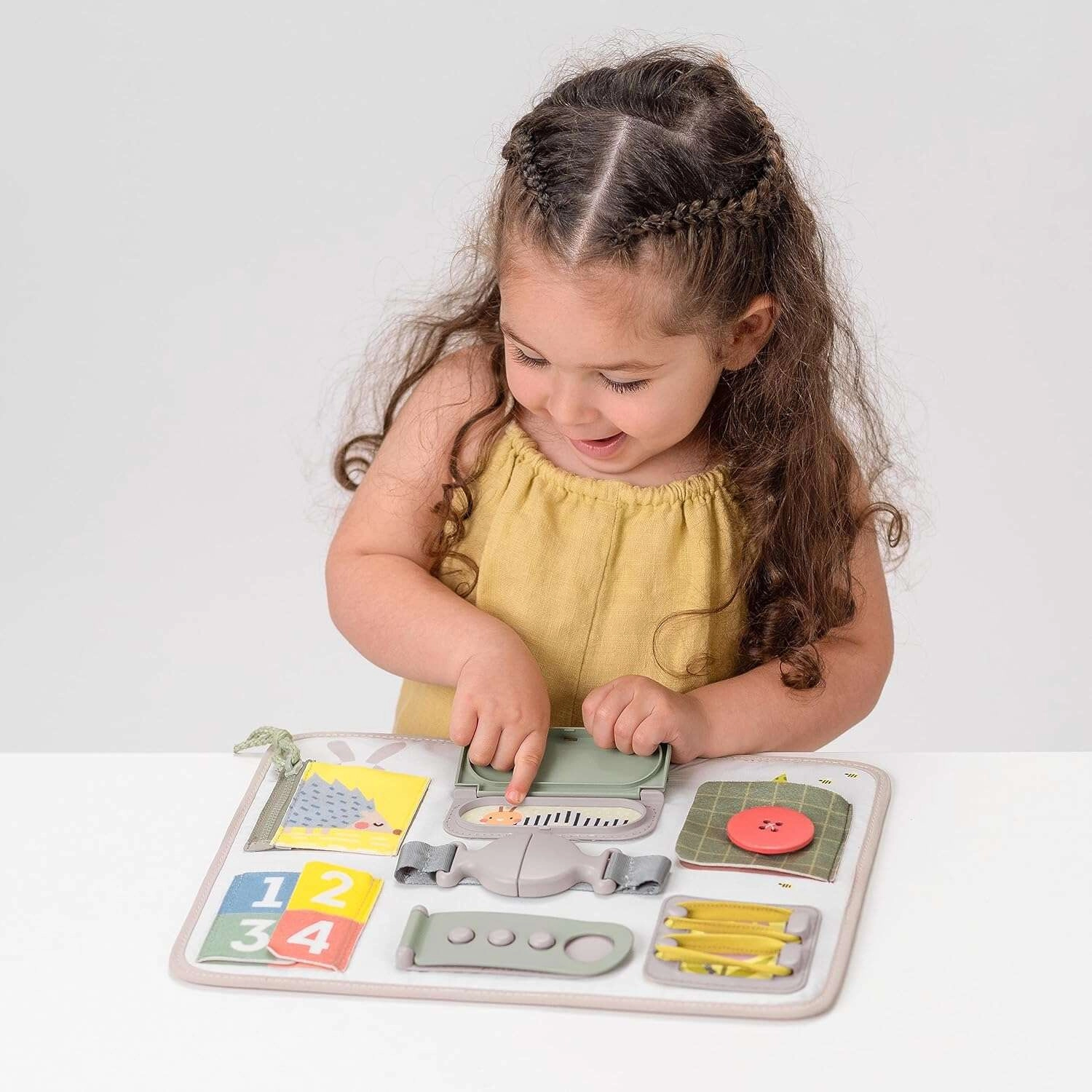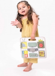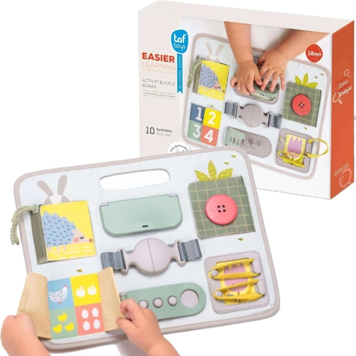Ontdek een slimme en veilige tool voor dagelijks leren via spel. De TAF TOYS Activity Buckle Board is ontworpen voor kinderen vanaf 18 maanden en combineert praktische sluitingen (rits, knoop, gesp, klittenband) met zintuiglijke elementen en activiteiten om te leren tellen. Het ingebouwde handvat maakt dragen eenvoudig, zodat je het bord gemakkelijk meeneemt op uitstapjes, in de auto of naar de grootouders.