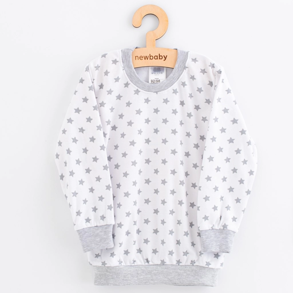 Zoekt u een pyjama waarin uw kind zich de hele nacht prettig voelt? De NEW BABY kinderpyjama van 100% zuivere katoen met sterretjes is zacht, ademend en huidvriendelijk. Het shirt zonder sluiting met een zachte halsboord gaat makkelijk over het hoofd aan, de broek heeft een comfortabele taille met een zachte elastiek en aangename boorden aan de pijpen die niet knellen.