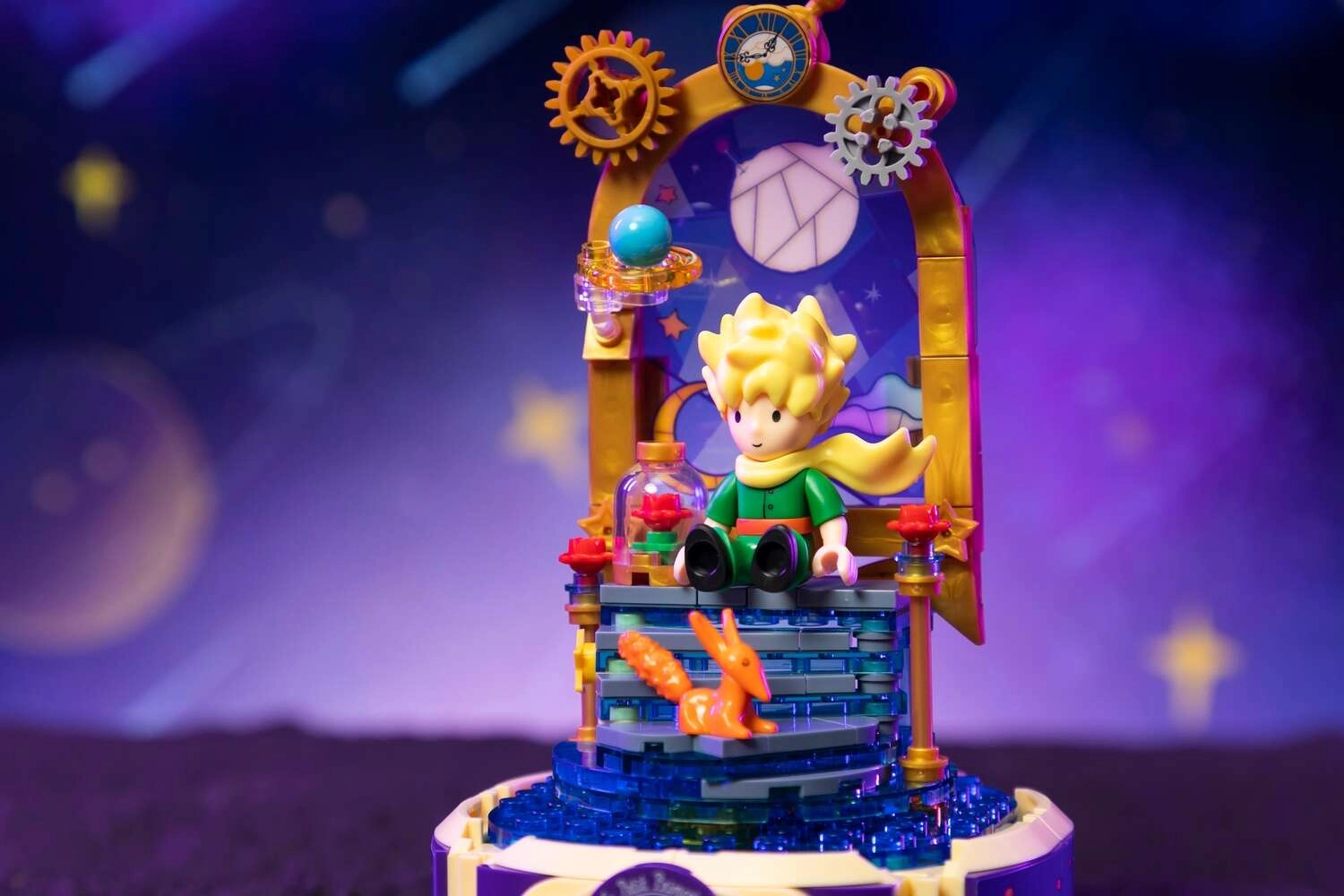 Betreed de poëtische wereld van LE PETIT PRINCE en bouw de scène “Sterrenpoort” met De Kleine Prins en de vos, versierd met gouden sterren, rozen en subtiele ornamenten. De sokkel in de vorm van een open boek met het opschrift “Le Petit Prince” benadrukt de literaire charme van deze tijdloze legende.