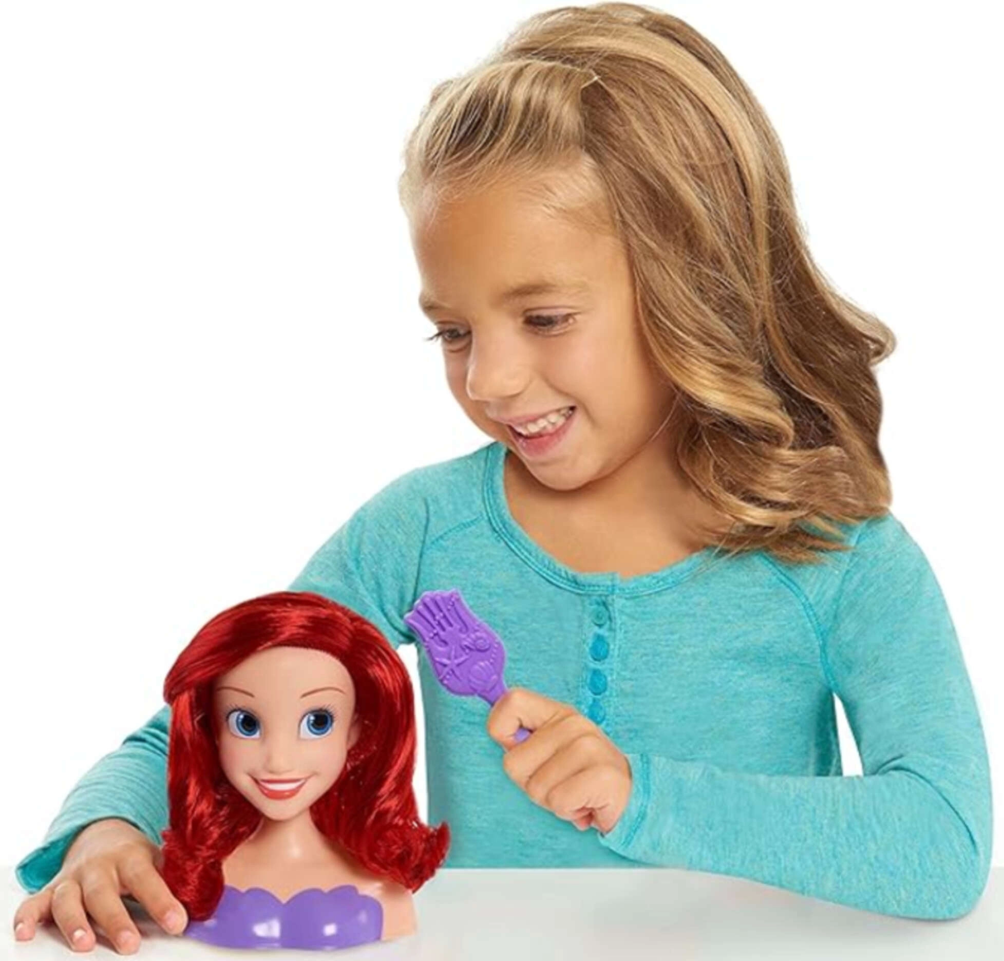 Ontdek de magie van kammen met de stylingskop van Ariel uit het geliefde sprookje De Kleine Zeemeermin. De lange, gladde haren zijn ideaal om te kammen, te vlechten en fantasierijke kapsels te creëren. Dankzij de prettige haarkwaliteit is stylen eenvoudig en leuk.