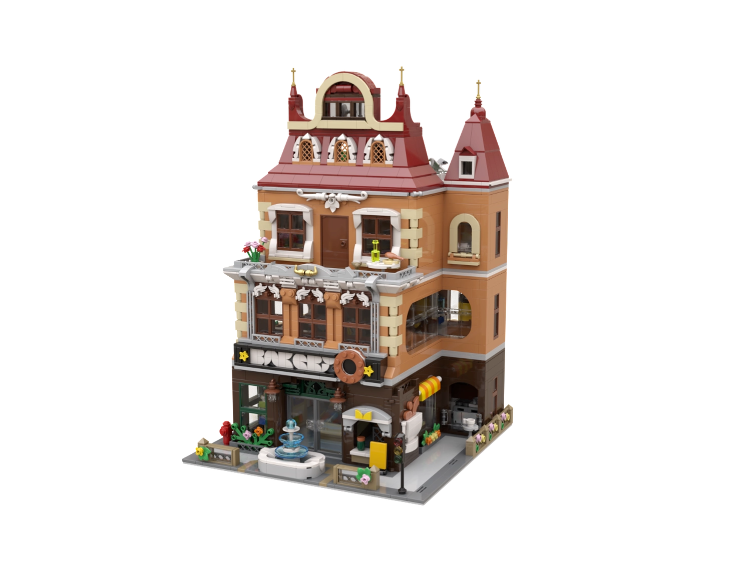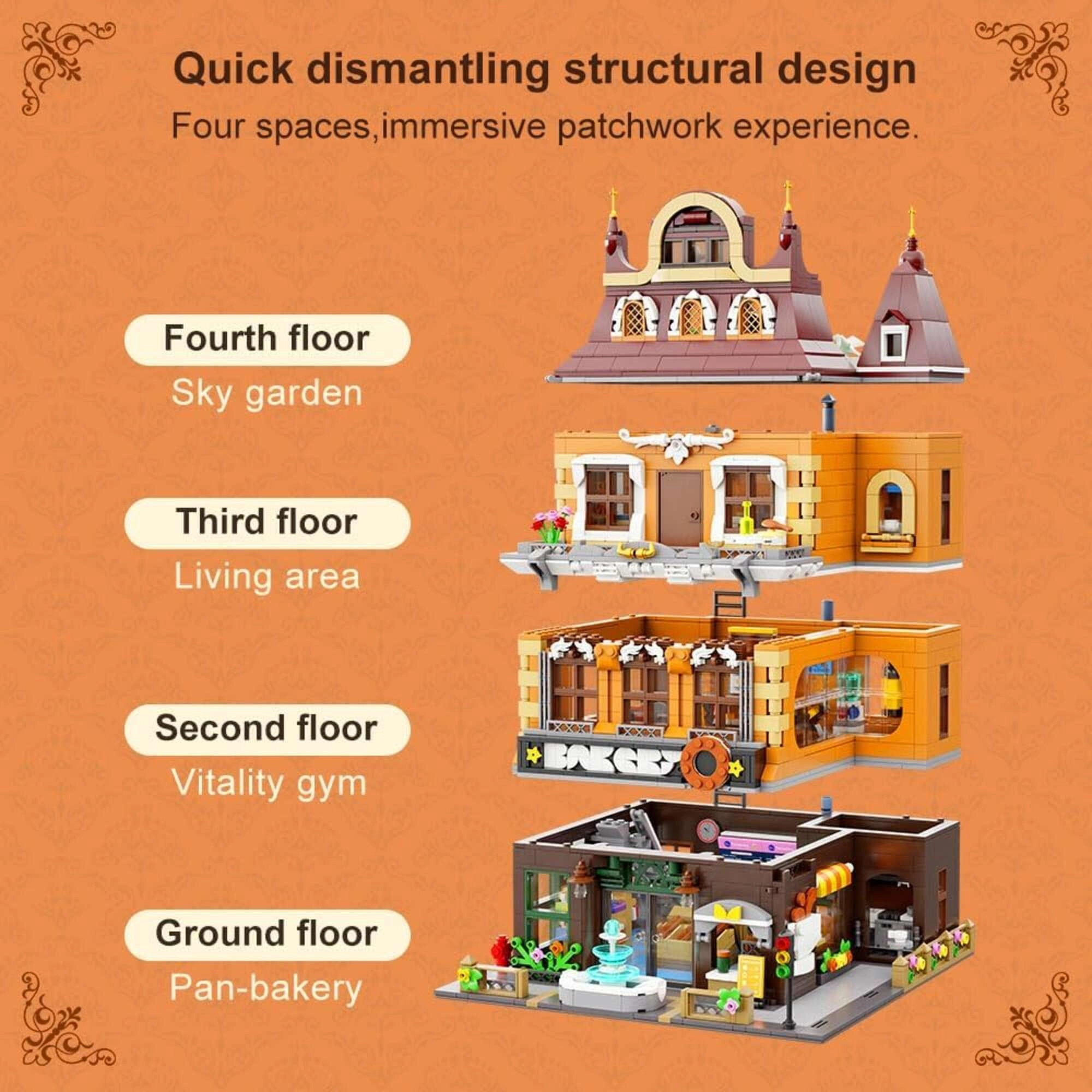 Geniet van een indrukwekkend model geïnspireerd op Europese architectuur. Warme bruintinten en doordachte details creëren de authentieke sfeer van een levendige marktplaats – je ruikt bijna de geur van versgebakken brood en koffie. De modulaire constructie maakt het eenvoudig verdiepingen te scheiden en te herindelen voor maximale creativiteit en presentatie.