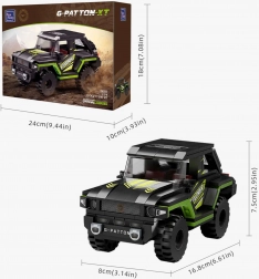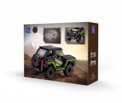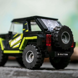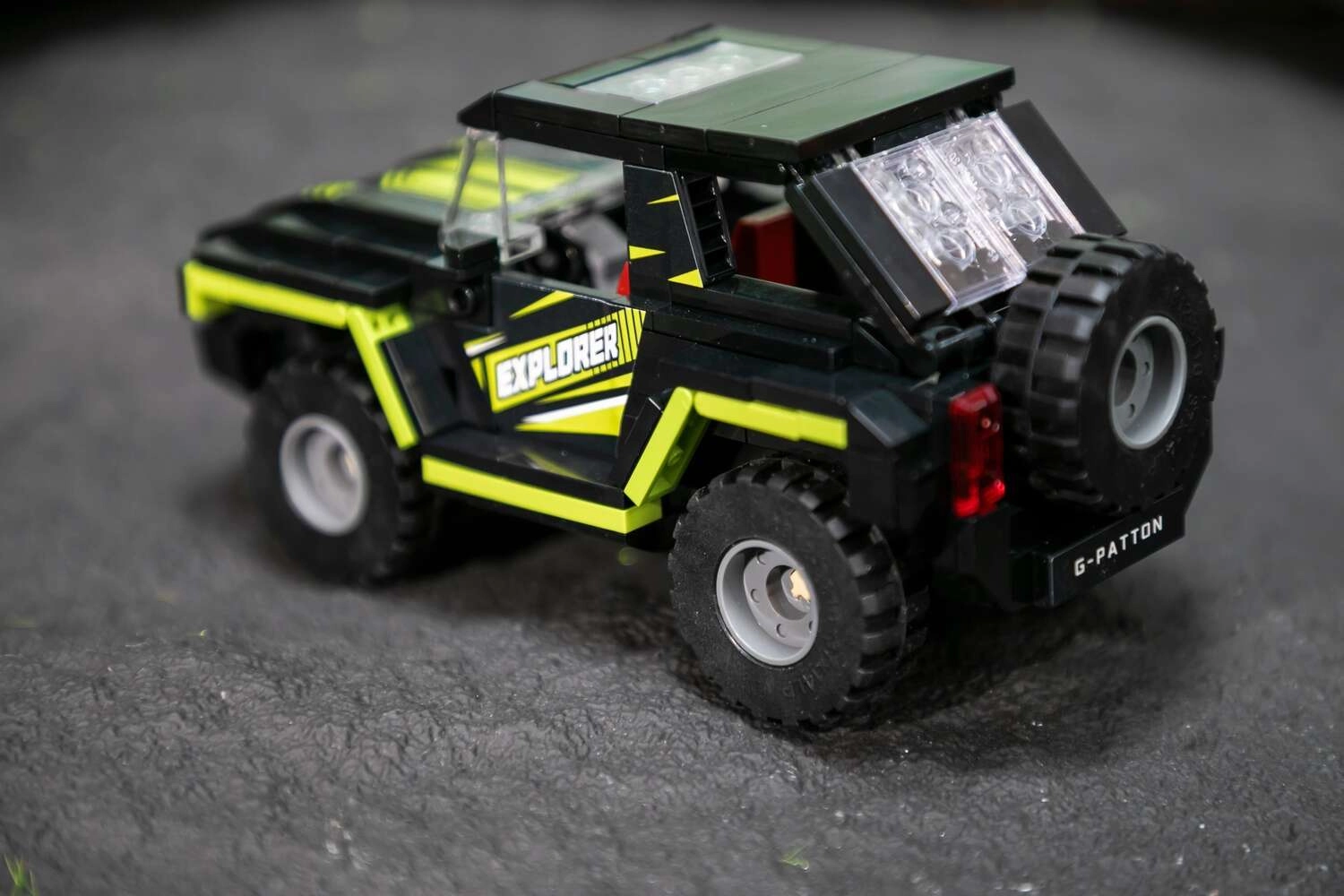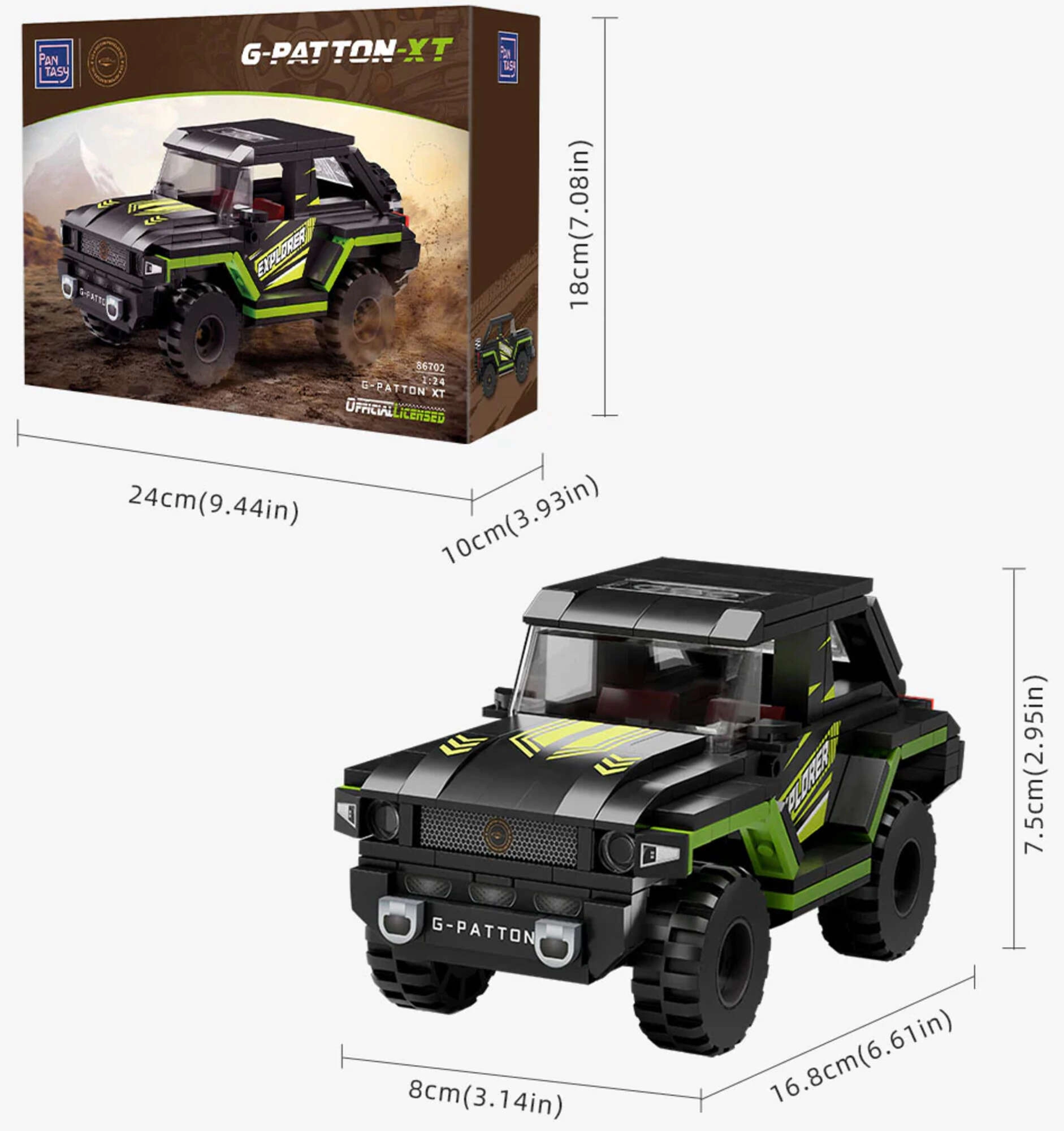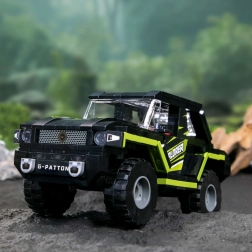 Dit stijlvolle offroadmodel in een zwart-limoenkleurige combinatie overtuigt met realistische details: forse banden, heldere “ramen”, een reservewiel achterop en prints met EXPLORER/G-PATTON. Dankzij precies passende onderdelen van ABS-kunststof is de bouw prettig en het resultaat stabiel en duurzaam.