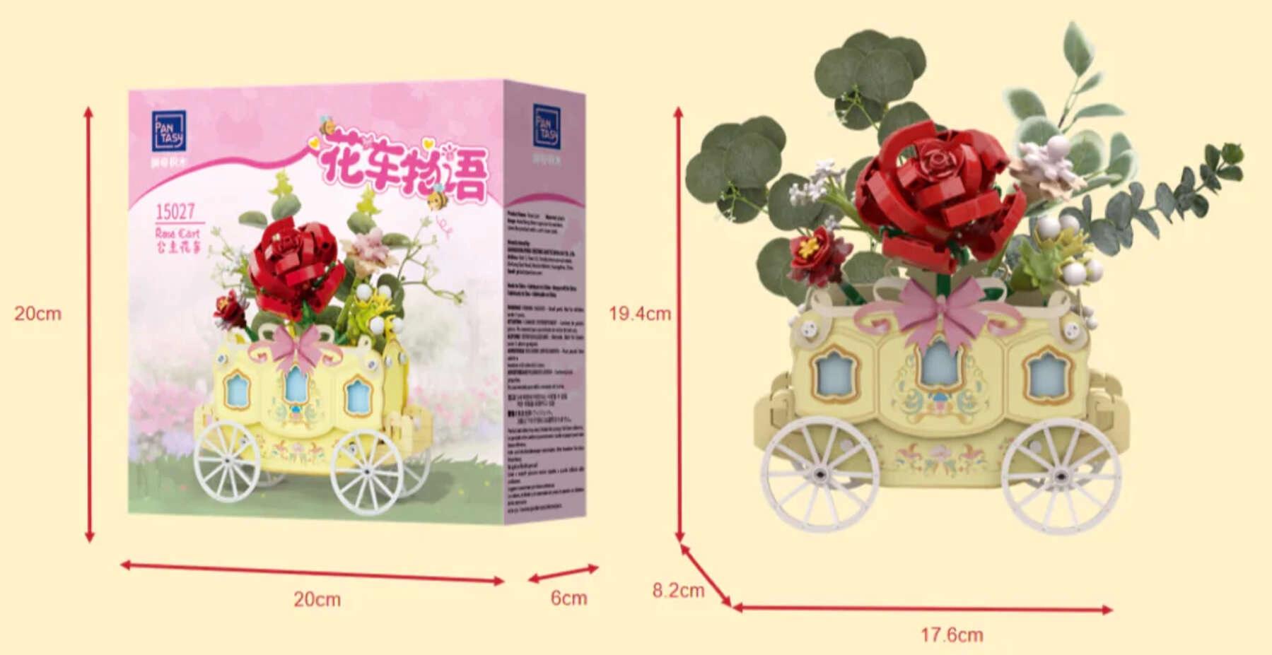 Betoverende PANTASY bouwset met 264 stukjes om een elegante bloemenkar met roos te bouwen, vol details en verfijnde versieringen. Dankzij bedrukte details zonder stickers, hoogwaardig ABS-kunststof en eenvoudig bouwen is het een geweldige keuze voor zowel kinderen als volwassen verzamelaars. Het eindmodel is decoratief en verrast als origineel cadeau en als stijlvolle decoratie voor het interieur.