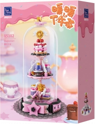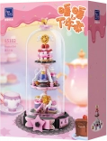 Ontdek de magie van creatief bouwen met een elegant model dat opvalt door een zachte roze-gouden kleurstelling en zorgvuldig ontworpen elementen. De driedelige etagère onder de heldere koepel oogt als een tentoonstellingsstuk en wordt na het bouwen een originele blikvanger in de kinderkamer of op het bureau.