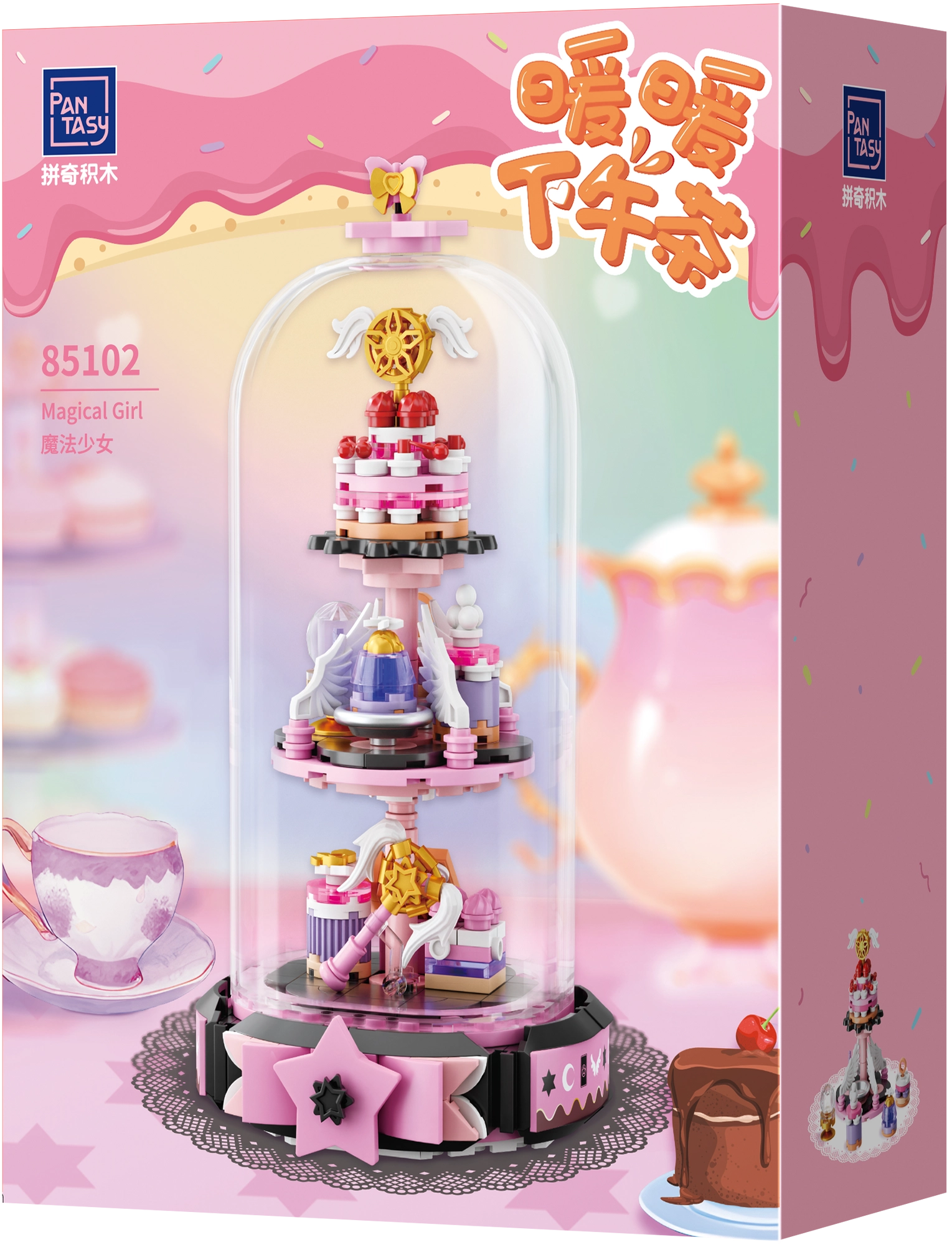 Pantasy Magical Girl is een charmante bouwset met 266 stukjes, die een magische esthetiek combineert met nauwkeurige afwerking. Onder een transparante koepel bouw je een drie verdiepingen tellende standaard vol schattige decoraties, sterretjes en zoete details. Dankzij bedrukte prints zonder stickers ziet het model er langdurig geweldig uit en is het ideaal als decoratie én cadeau voor kinderen vanaf 6 jaar en volwassen bouwfans.