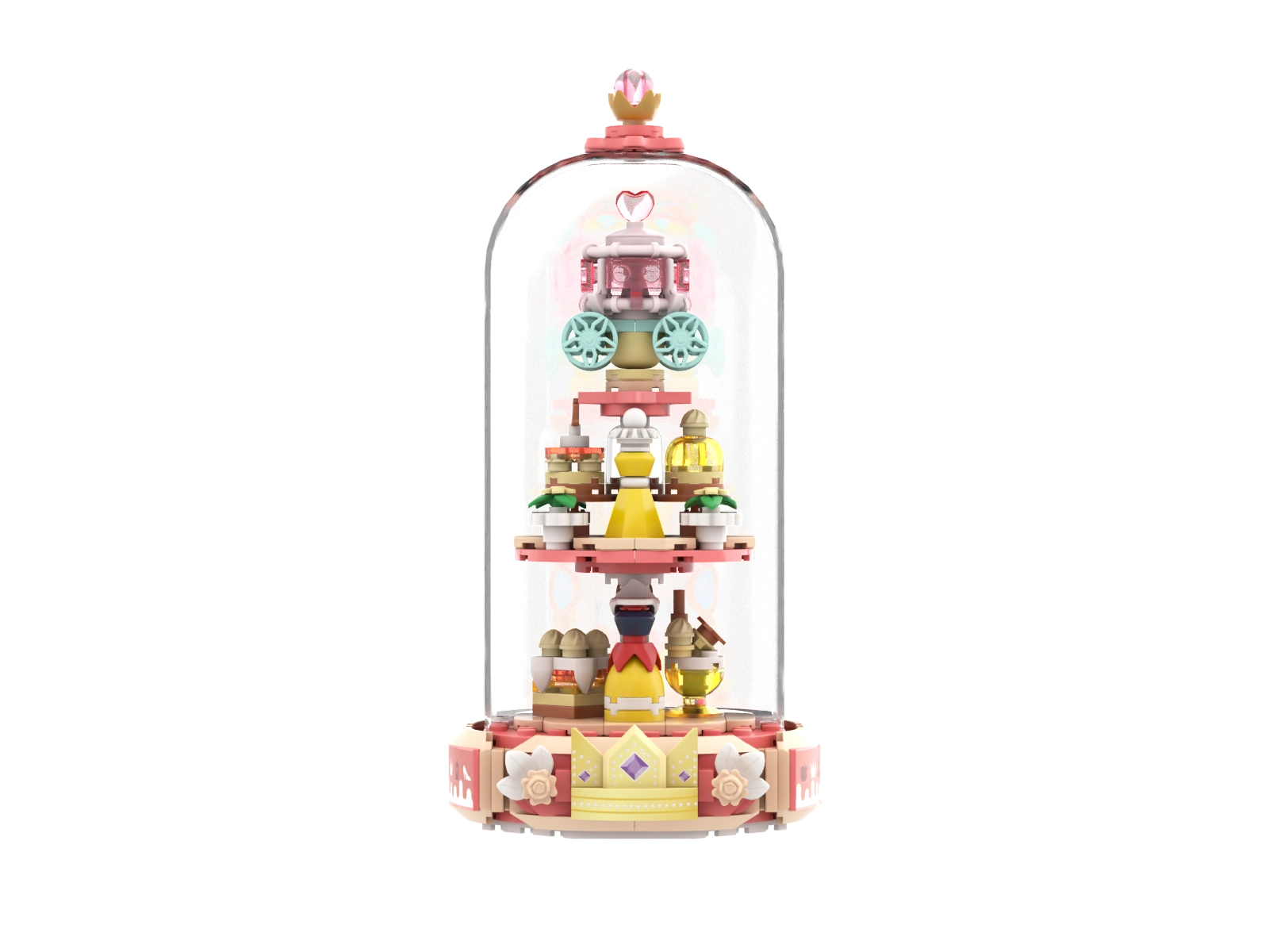 De Dreamy Princess bouwset is ontworpen voor liefhebbers van sprookjes, verzamelaars en kinderen. De drie niveaus onder een transparante koepel doen denken aan een elegante display van een koninklijk bal – met subtiele versieringen, pasteltinten en kroonmotieven. Na voltooiing is het model een prachtige interieurdecoratie en een stijlvol stuk voor je collectie.