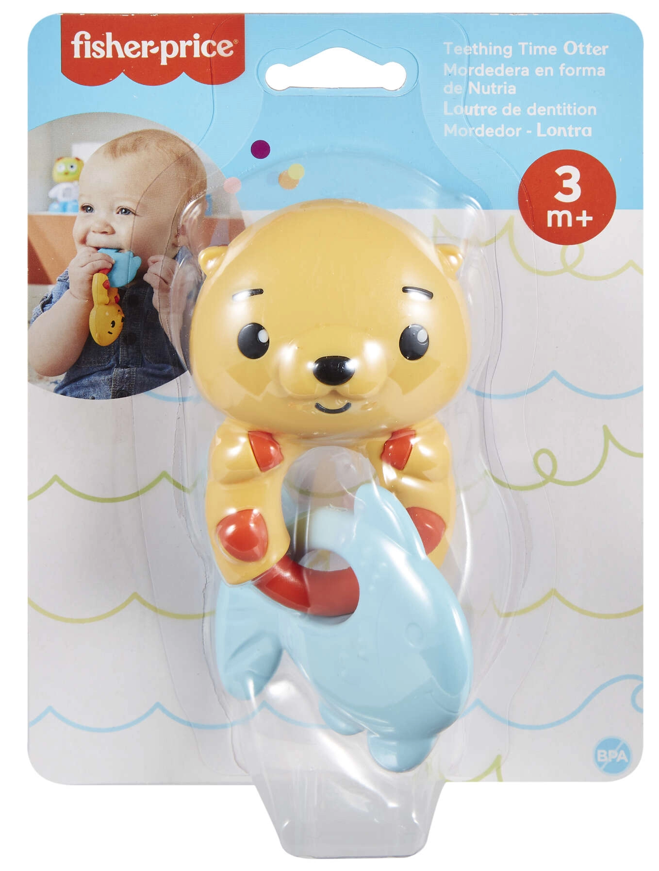 - Bijtspeeltje Otter (Teething Time Otter): zacht en veerkrachtig bijtspeeltje met getextureerd oppervlak voor verlichting van het tandvlees.