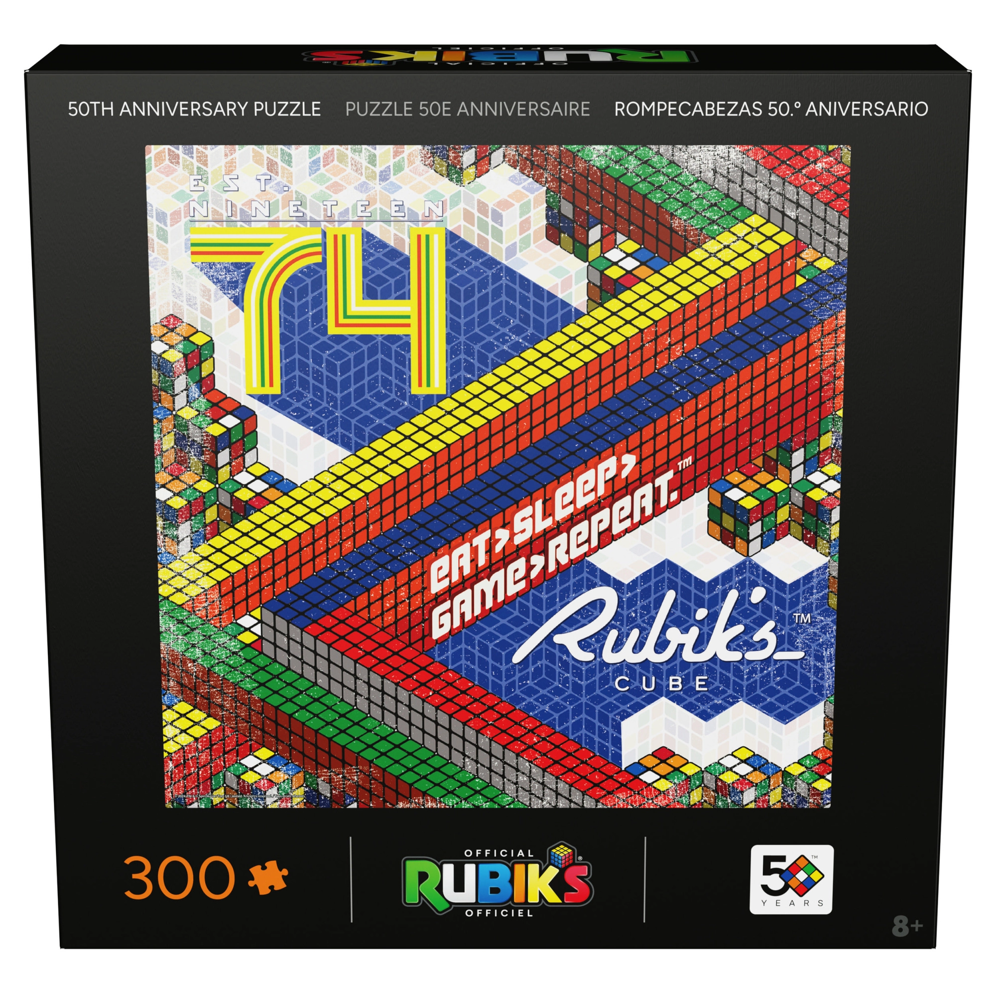 Geniet van ontspanning én uitdaging met de officiële puzzel ter ere van het 50e jubileum van de RUBIK’S kubus. Na het leggen ontstaat een kleurrijke mozaïek met een wand van samengevoegde kubussen, het opvallende getal “74” en de slogan “Eat, Sleep, Game, Repeat!”. Dankzij de contrasterende kleuren en het opvallende ontwerp komt het eindresultaat prachtig uit in een lijst aan de muur.