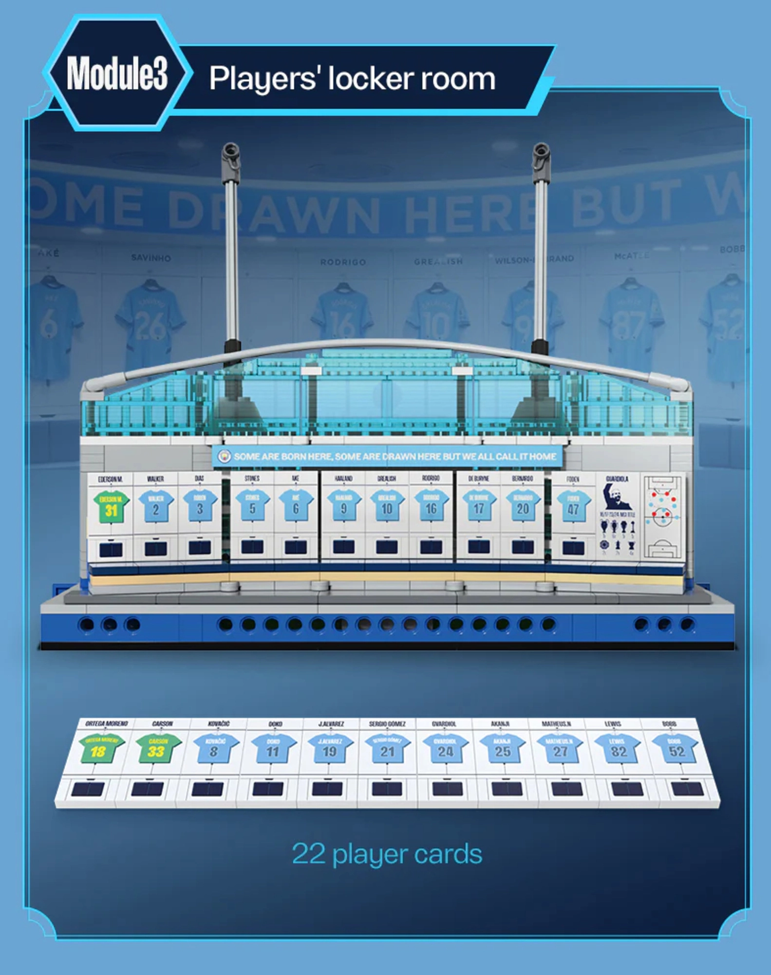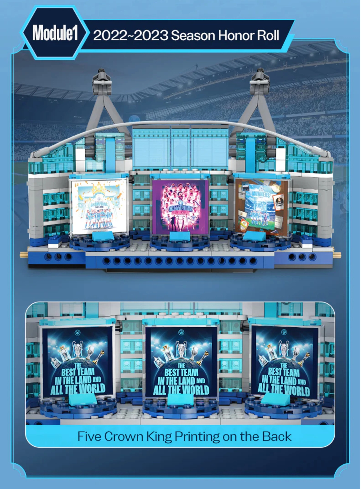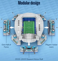 Bouw een aparte kleedkamer en Hall of Fame. Bedrukte elementen benadrukken de iconische gevels en interieurdetails.