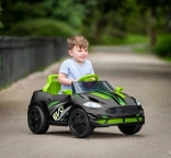 De elektrische auto EVO Venom valt op door zijn moderne sportieve design en oog voor detail. Kinderen genieten van de koplampen, het motorgeroep en de claxon, die de realistische rijervaring versterken. De ergonomisch ontworpen cockpit met pedalen voor rijden vooruit en achteruit biedt comfortabele en intuïtieve bediening.