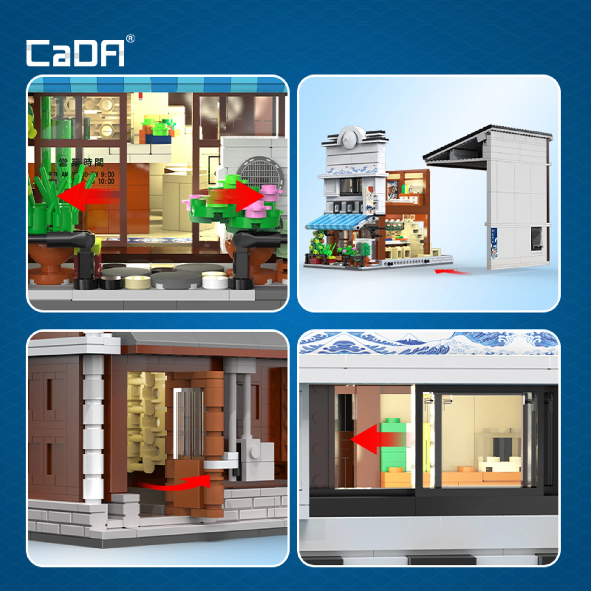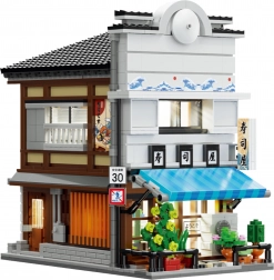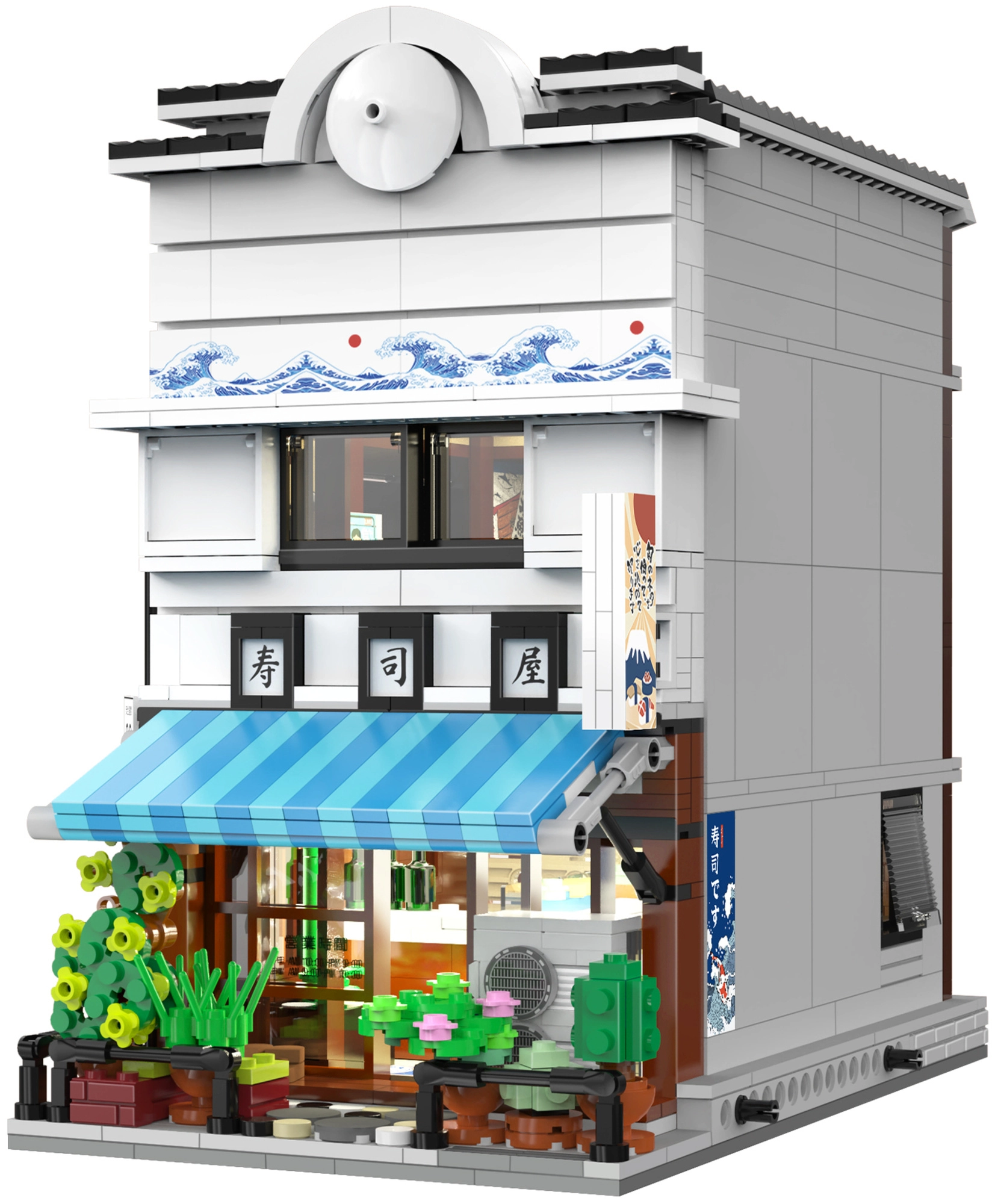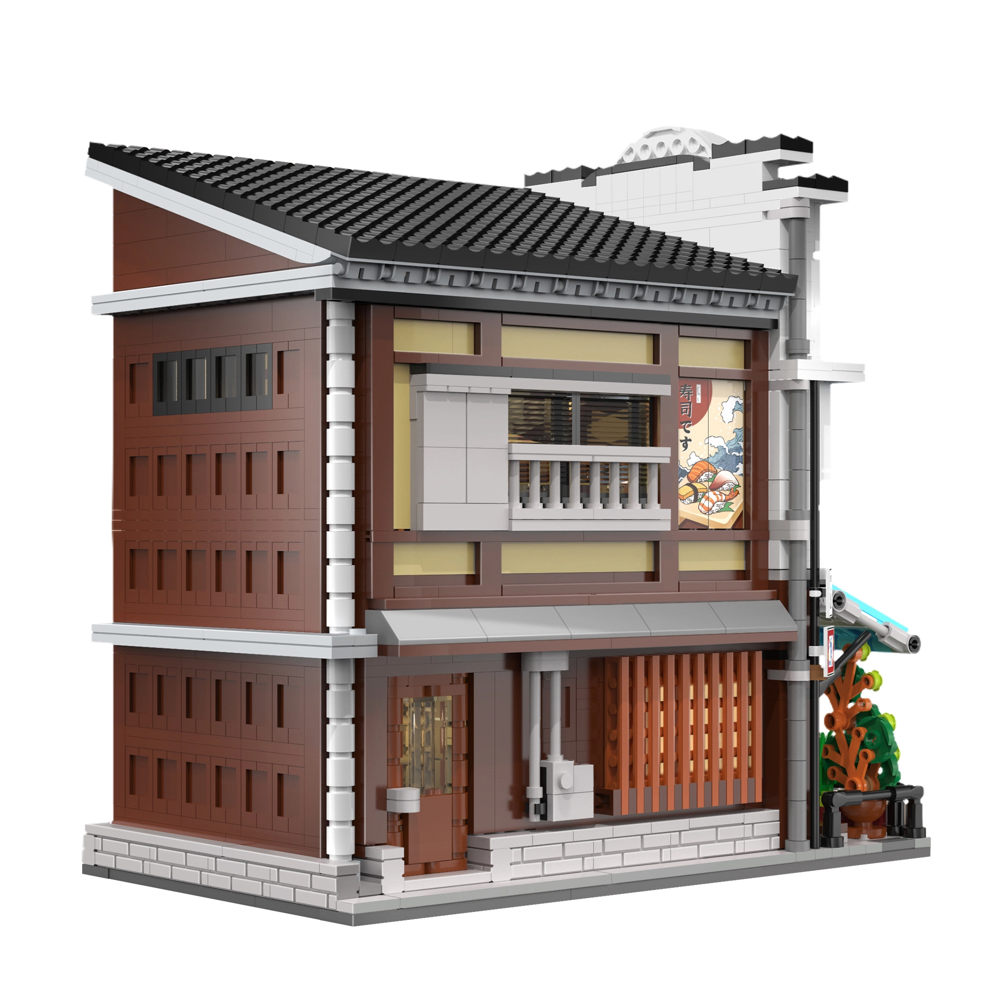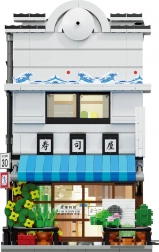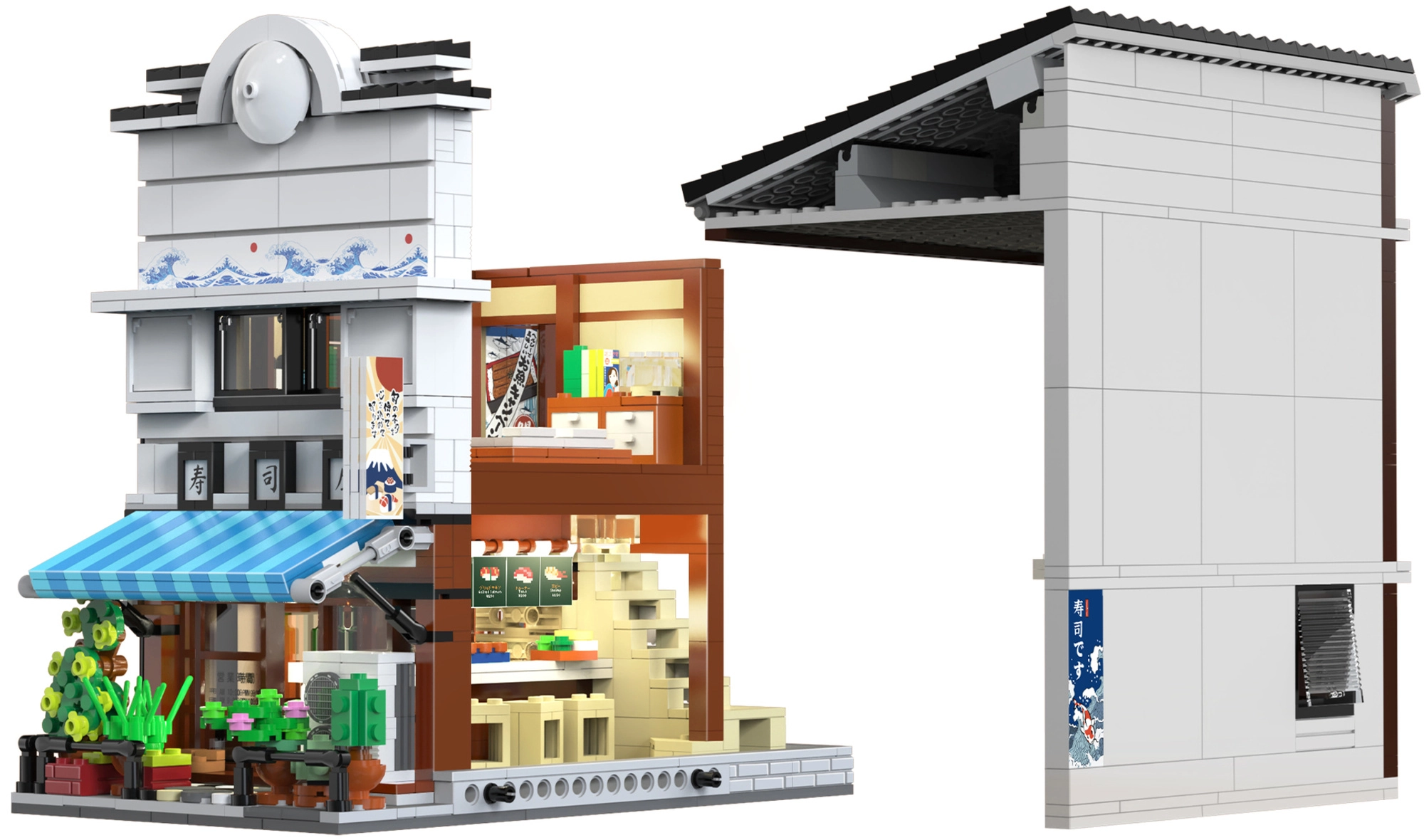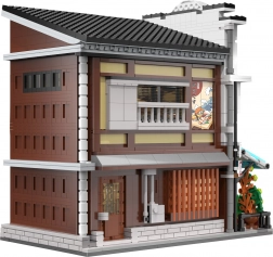 Deze designbouwset brengt een authentieke Japanse tweelaagse sushiwinkel met focus op details van interieur en exterieur. De openklapbare constructie maakt het eenvoudig om binnenin te kijken – je vindt er barkrukken, decoratieve bamboe, een trap en een knusse kamer op de bovenverdieping met bed, tv en ladekast.