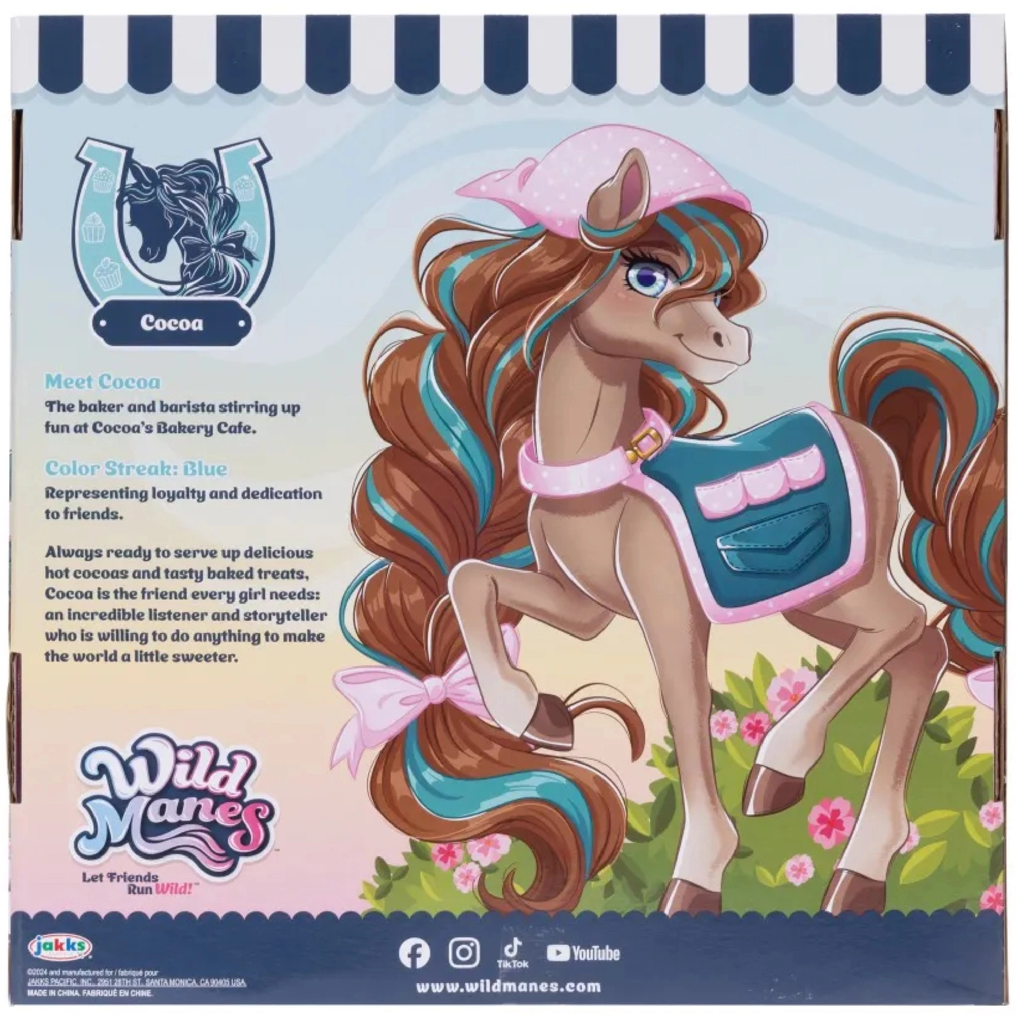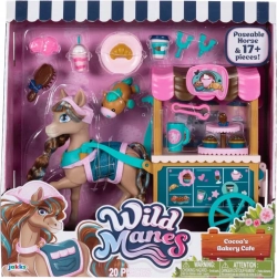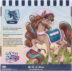 Pony Cocoa uit de populaire serie WILD MANES komt met een gedetailleerde Bakery Café-kar, waar drankjes en gebakjes geserveerd kunnen worden. De figuur heeft een zorgvuldig gestylde manen met vlechtjes, expressieve ogen en draagt een stijlvolle schort – klaar voor elk avontuur. Dankzij de hoefijzervormige clipjes kan Cocoa accessoires vasthouden en speel je gemakkelijk verschillende scènes.