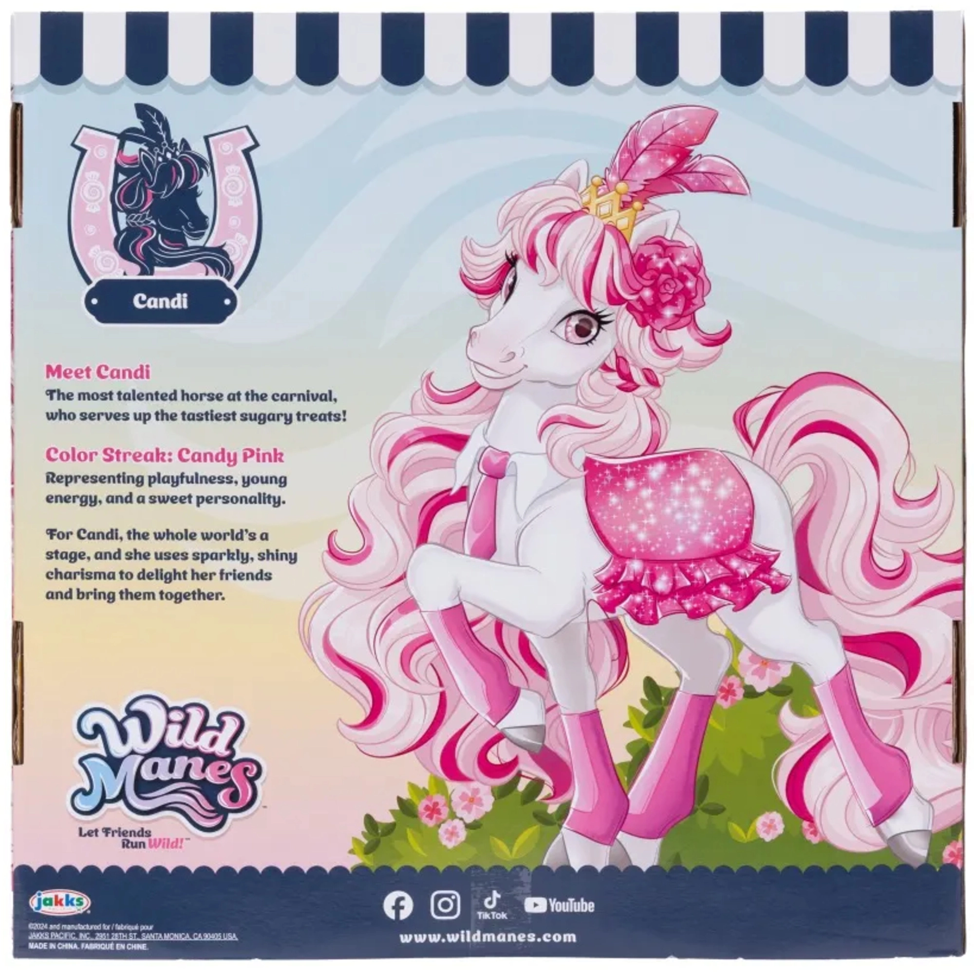 Eenhoorn Candi betovert met haar witte lijfje, roze manen en staart, glinsterende kroon en stijlvolle outfit. Dankzij de bewegende ledematen kan het figuurtje eenvoudig in verschillende poses worden gezet om favoriete scènes uit de wereld van WILD MANES te herbeleven.