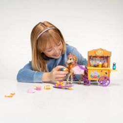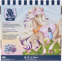 Het figuurtje Bailey valt op met een lange manen met paarse lokken, schattige sproetjes en een stijlvolle transparante klep. Dankzij de bewegende ledematen zet je haar eenvoudig in verschillende poses en speel je favoriete scènes uit de serie WILD MANES na. De set bevat een grote Surf & Snacks-kar met wieltjes en leidsels die je aan het paardje kunt vastmaken, zodat je de verkoopkraam echt kunt “laten rijden”.