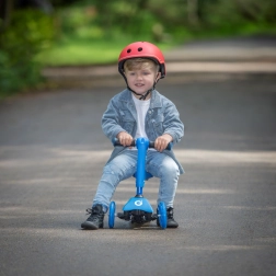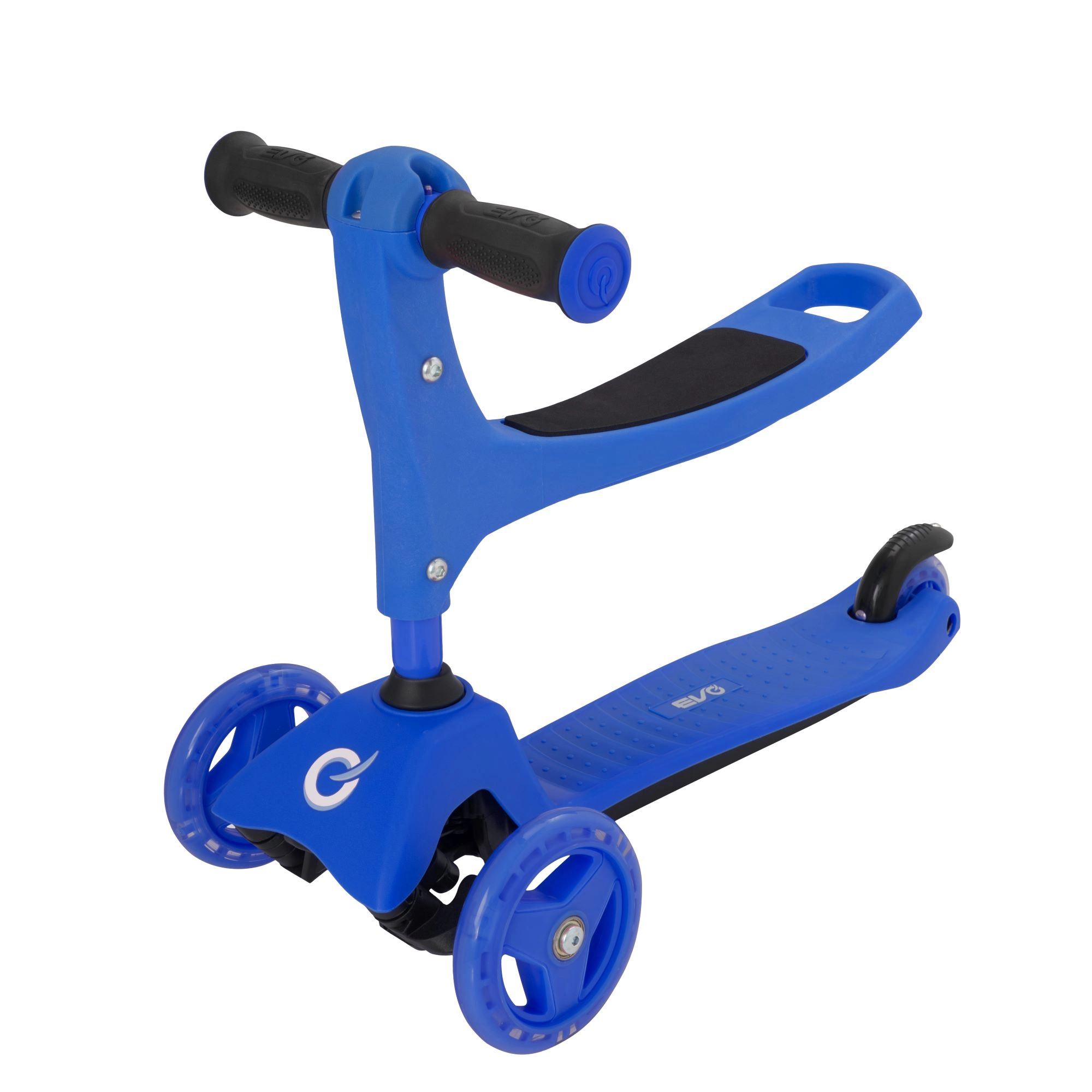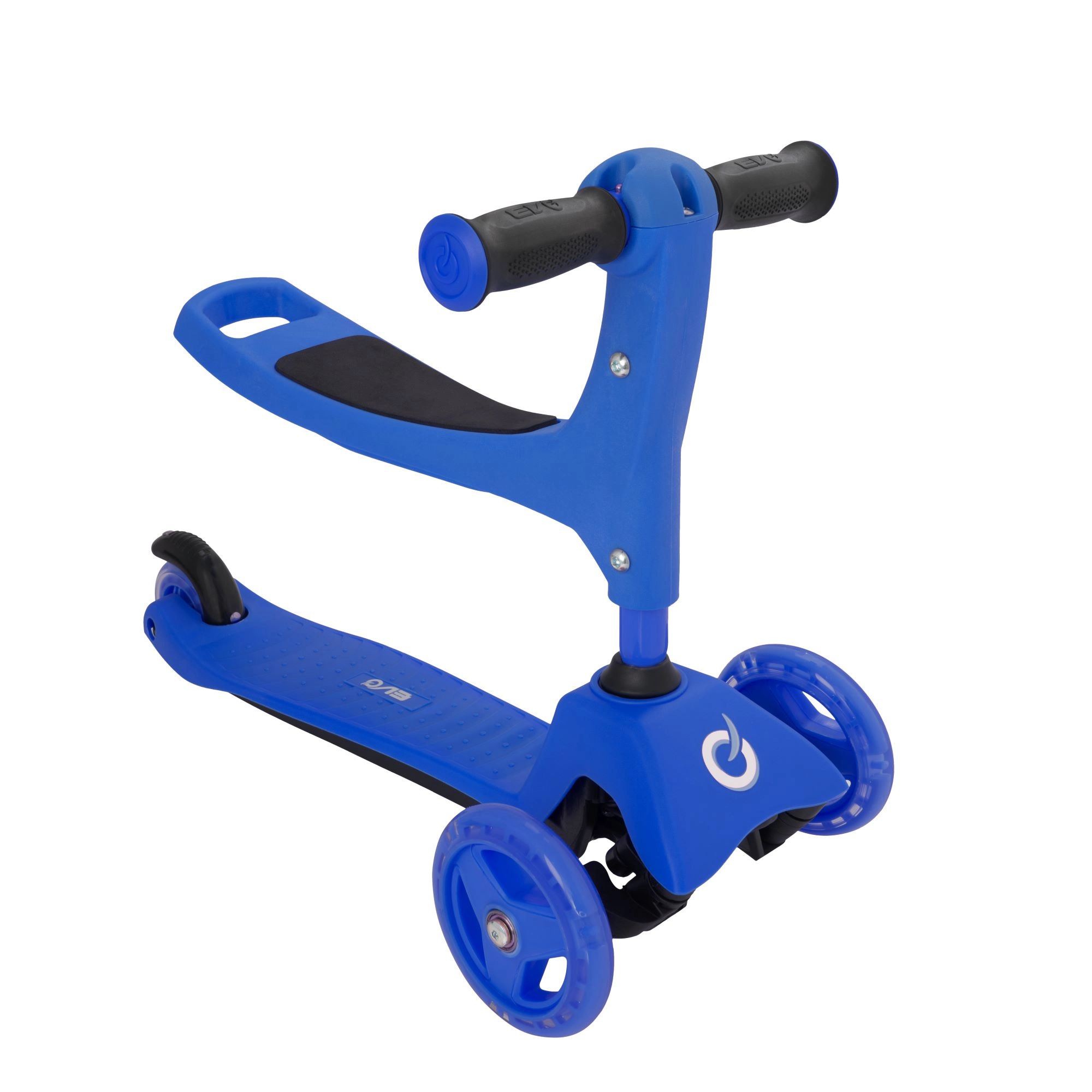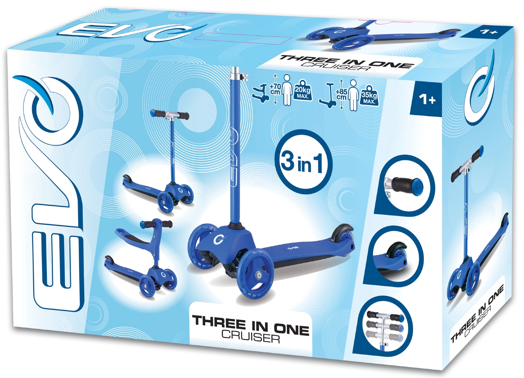 De EVO 2-in-1 step groeit met je kind mee: begin in de modus loopfietsje met zitje voor een zekere start en stap later over op de klassieke driewielerstep. Twee grote voorwielen zorgen voor uitstekende stabiliteit, de lean-to-steer stuurmethode ondersteunt het natuurlijk leren van balans en het antislip deck geeft zekerheid bij elke meter.