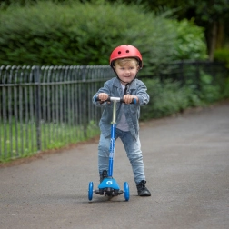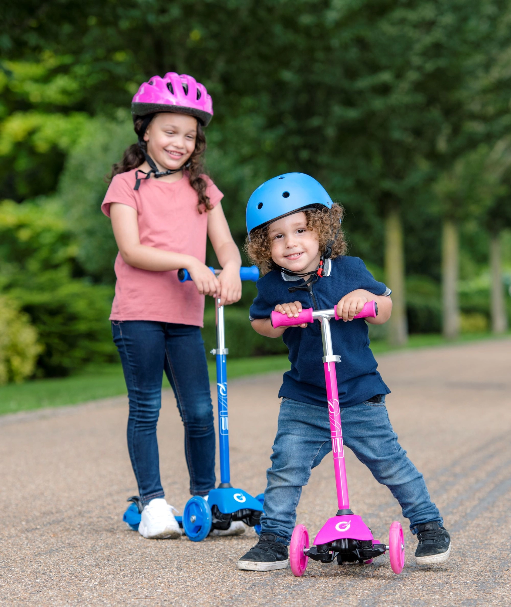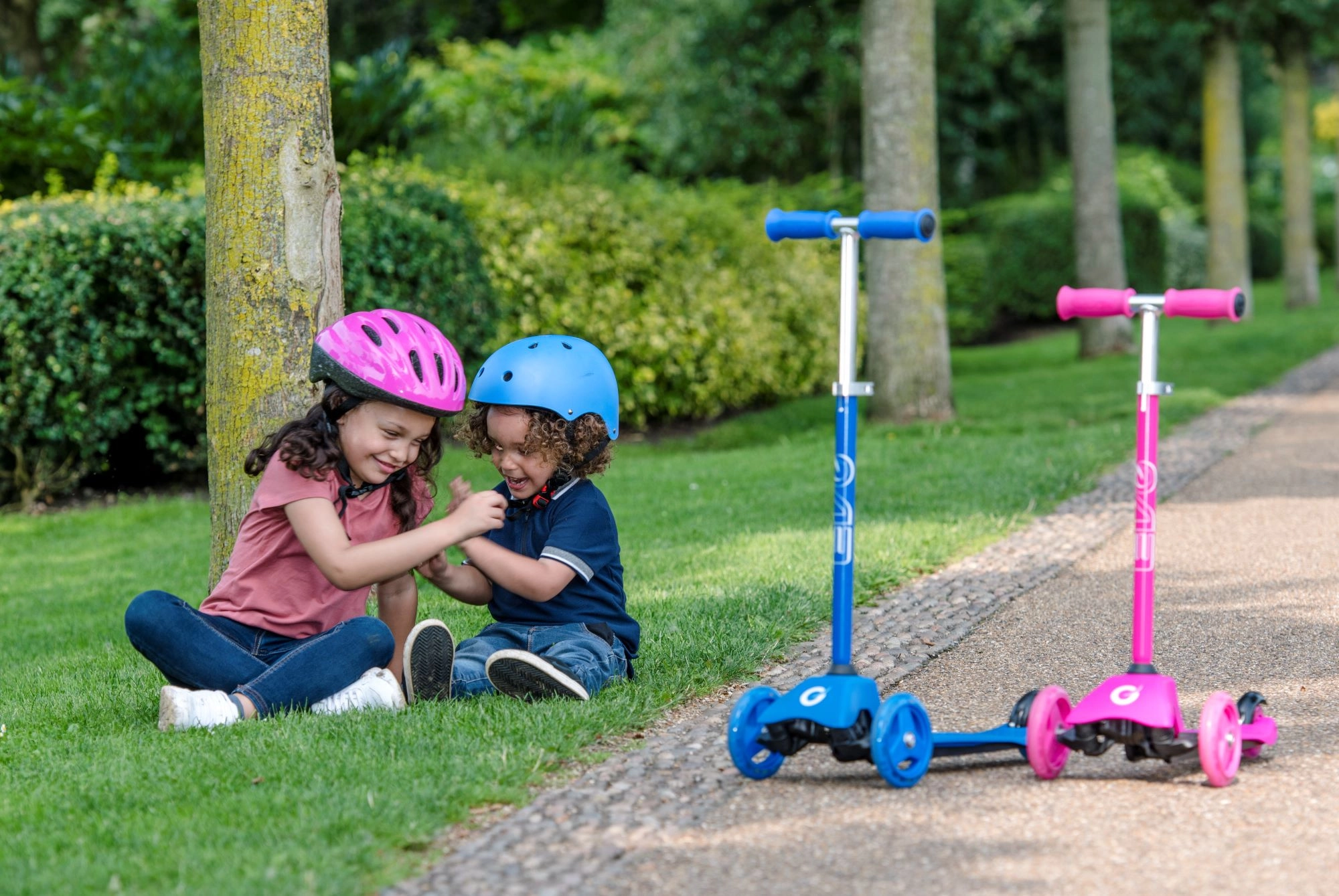 Twee grote voorwielen houden richting en balans, het lage antislip deck geeft beginnende rijders vertrouwen.