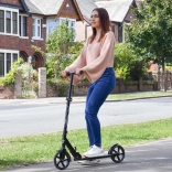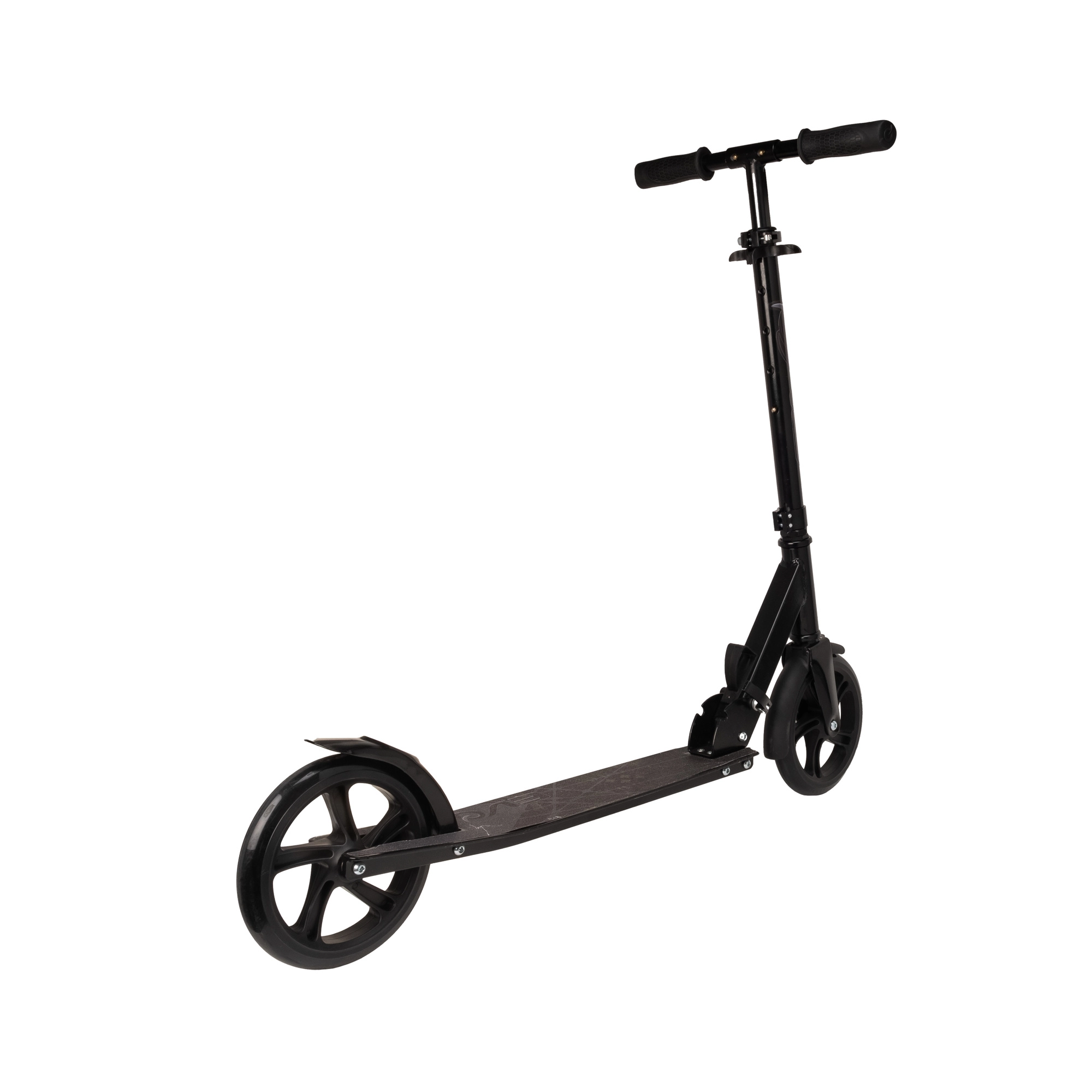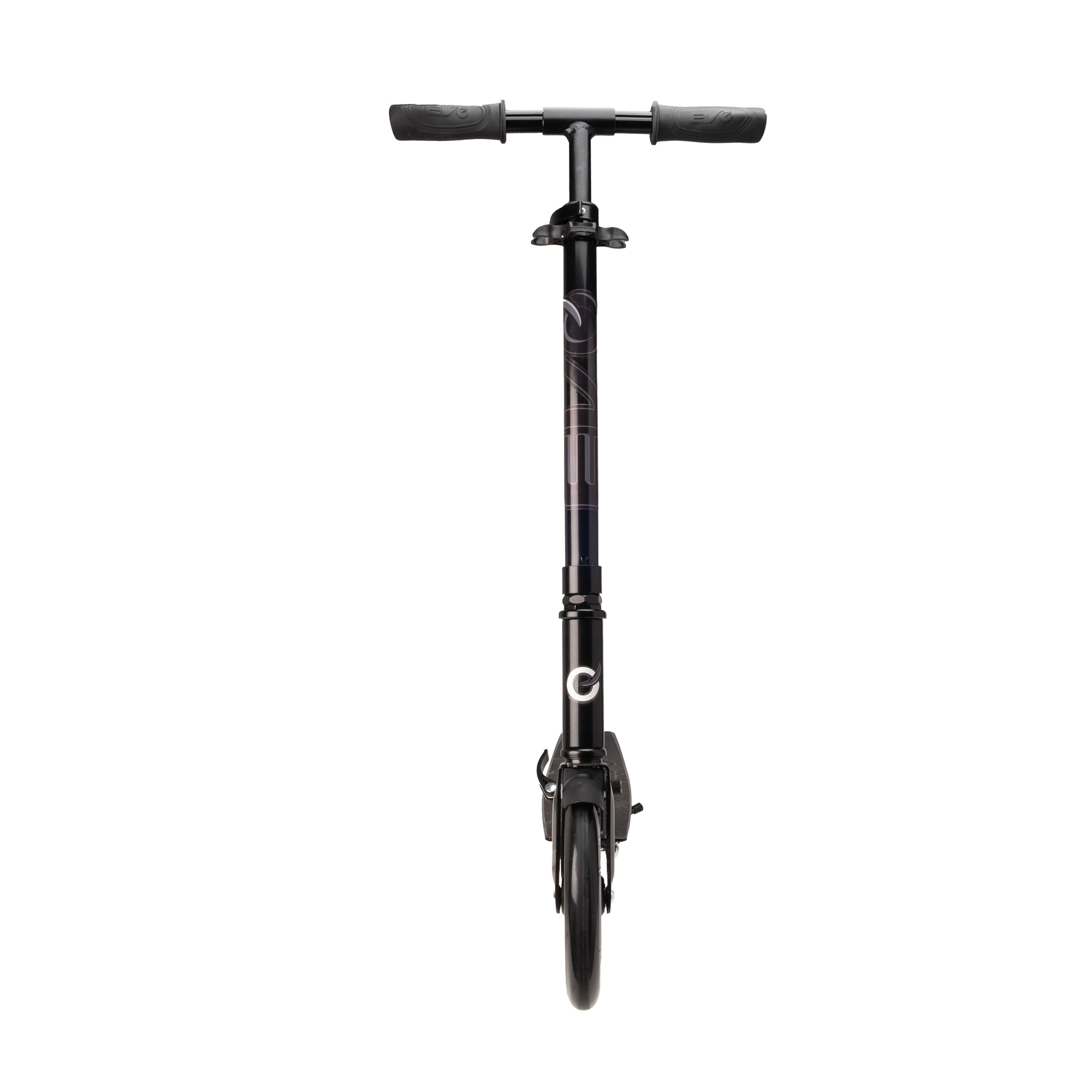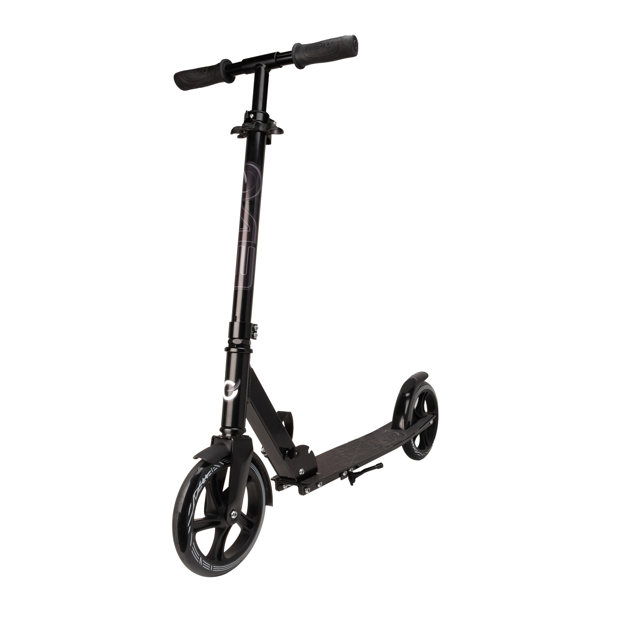 Het duurzame frame in universeel zwart wordt aangevuld met een achterspatbord dat tevens dient als voetrem voor snel en veilig stoppen. Dankzij de opvouwbare constructie en schouderriem is dragen en opbergen maximaal comfortabel – thuis, op school en onderweg.