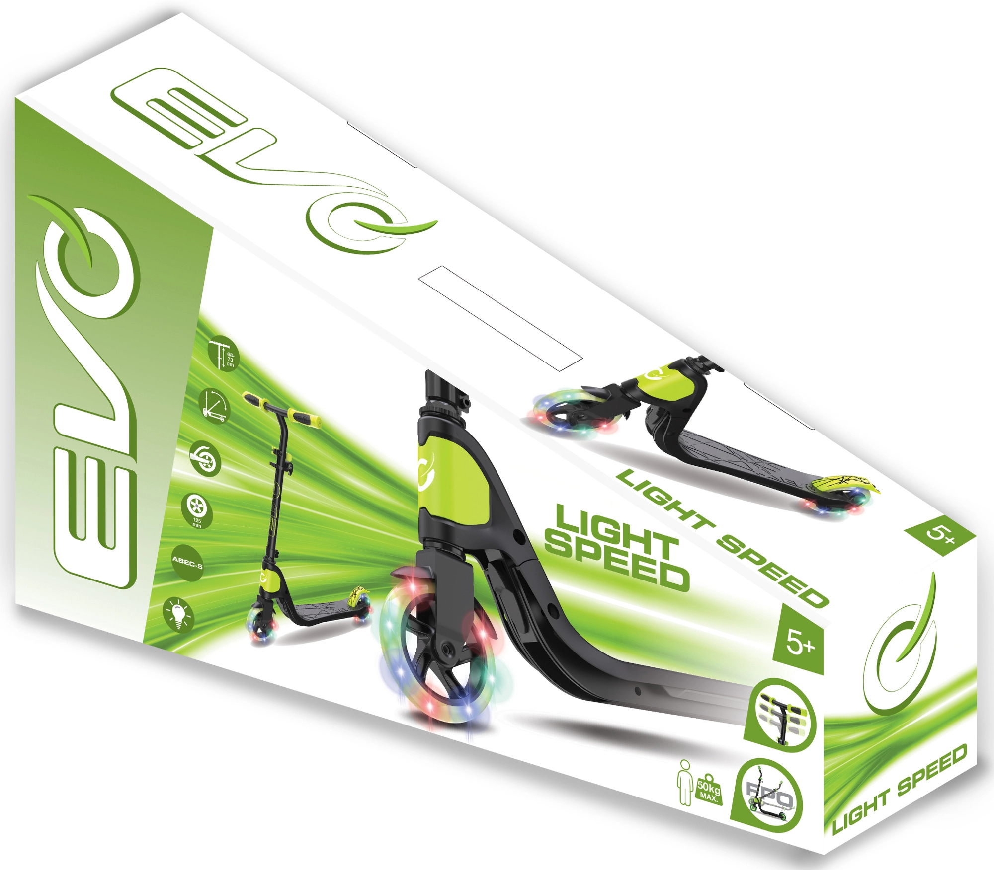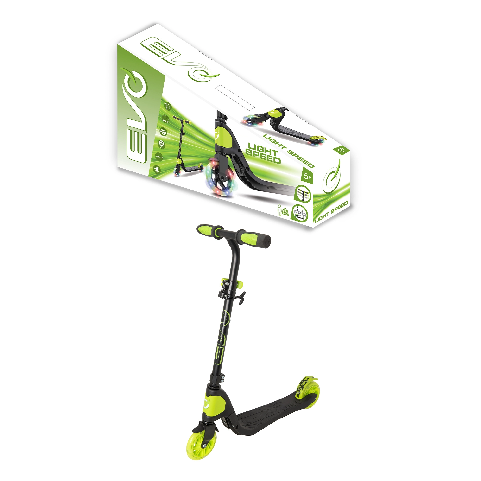 De lichte en stabiele kinderstep EVO Light Speed combineert een inklapbaar ontwerp, verstelbaar stuur en lichtgevende wielen voor een leuke en veilige rit. Dankzij de stille ABEC‑5 lagers, voetrem en comfortabele TPR-handvatten is hij ideaal voor kinderen vanaf 5 jaar voor recreatief rijden op vlakke ondergrond.