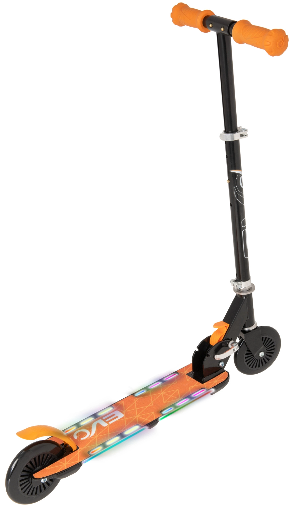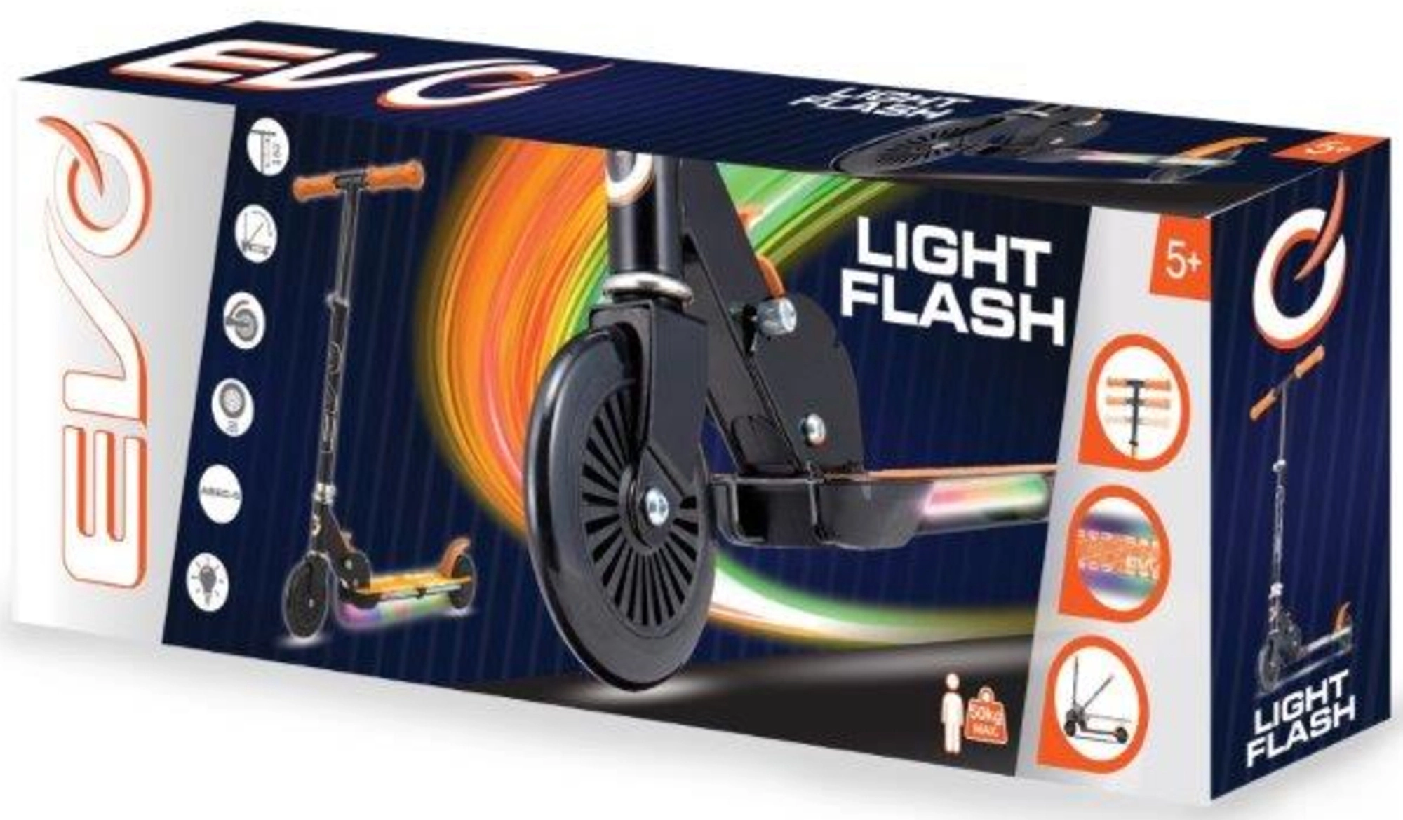 De EVO Light Flash step is een uitstekende keuze voor jonge rijders die stijl, veiligheid en fun willen. Het deck met kleurrijke LED-verlichting verhoogt de zichtbaarheid en geeft een aantrekkelijk effect, terwijl de lichte, inklapbare constructie opbergen en vervoeren vergemakkelijkt. De verstelbare stuurhoogte (ca. 72–82 cm) zorgt voor ideale ergonomie voor verschillende lengtes.
