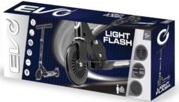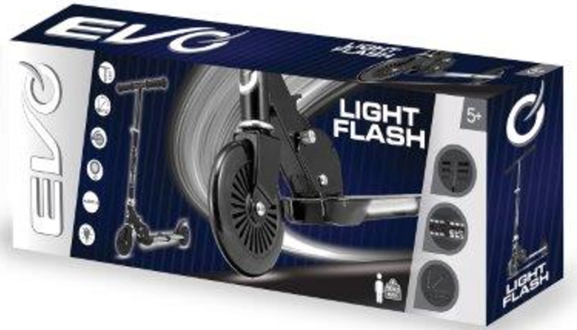 De kinderstep EVO Light Flash is licht, opvouwbaar en heeft een verstelbaar stuur voor kinderen vanaf 5 jaar. Hij biedt stille rubberen wielen met ABEC-5-lagers, een voetrem op het achterspatbord en een leuke verlichte voetplaat op 4× AAA-batterijen. Ideaal voor recreatief rijden op vlakke ondergrond met nadruk op stabiliteit en veiligheid.