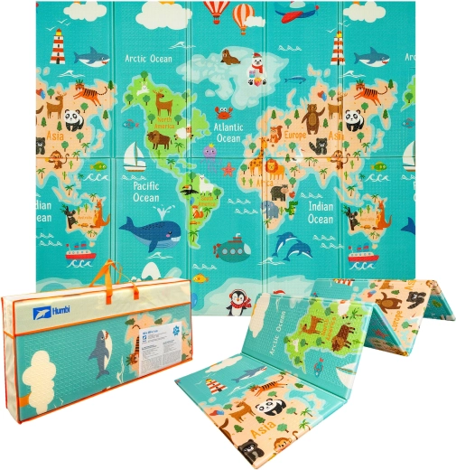 Ontdek de ruime en zachte HUMBI-speelmat van hoogwaardige XPE-schuim met afmetingen 200 × 180 × 1 cm. Hij is dubbelzijdig – één zijde met een kleurrijke wereldkaart, de andere met stadsstraatjes – en biedt een veilige, waterdichte en gemakkelijk afwasbare oppervlakte voor baby’s en kinderen vanaf de geboorte. Dankzij de opvouwbare constructie en de praktische draagtas in de set past hij perfect in de kinderkamer, woonkamer en zelfs in de tuin. Vrij van schadelijke stoffen, CE-, EN71- en REACH-certificering voor maximale gemoedsrust van ouders.
