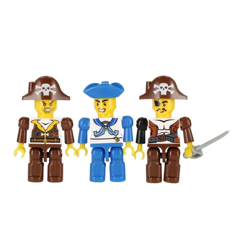Twee piraten en een soldaat/matroos vergroten de speelmogelijkheden. Beweegbare onderdelen en accessoires stimuleren de creativiteit.