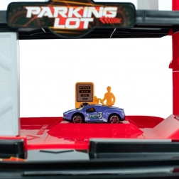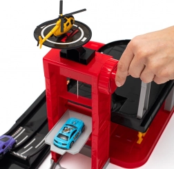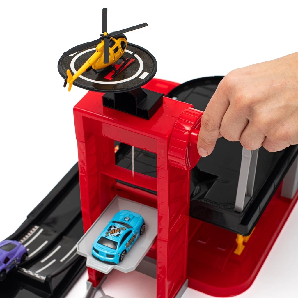 - ParKeergarage met lift en hellingen, tankstation, helipad, 4 metalen autootjes, helikopter