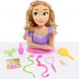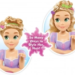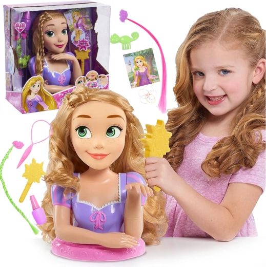 Dit luxe stylinghoofd van Rapunzel biedt kinderen alles wat ze nodig hebben om betoverende kapsels te maken. Dankzij het lange blonde haar kun je eenvoudig kammen, krullen en vlechten en verschillende versieringen combineren. De stabiele voet houdt het hoofd stevig op tafel, zodat kinderen zich volledig op hun creatieve spel kunnen richten.