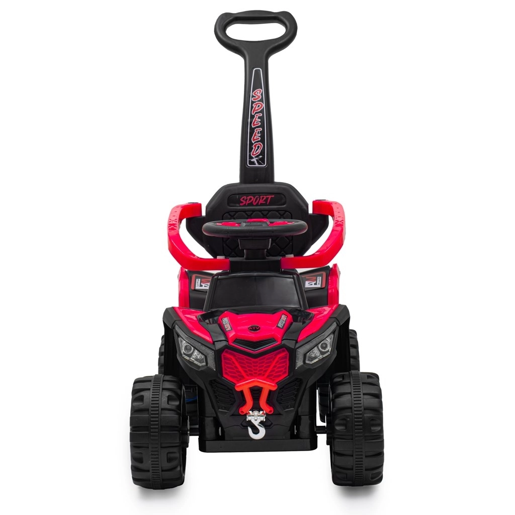 De elektrische loopfiets Ruggy combineert modern design, een stabiele constructie en eenvoudige bediening voor de eerste rijervaringen van kinderen. Na het indrukken van het gaspedaal gaat de kleine bestuurder op avontuur, terwijl ouders dankzij de hoge duwstang veilig kunnen assisteren.