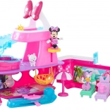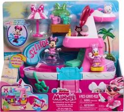 Bijgevoegd zijn de figuren MINNIE, DAISY en het schattige hondje Snowpuff, die je in de stoeltjes kunt zetten, op de schommel kunt plaatsen of van de glijbaan kunt laten gaan. Licht en geluid en de fonkelende “discobal” geven elke scène een magische sfeer, terwijl koud water in het zwembad de magische kleurverandering activeert.