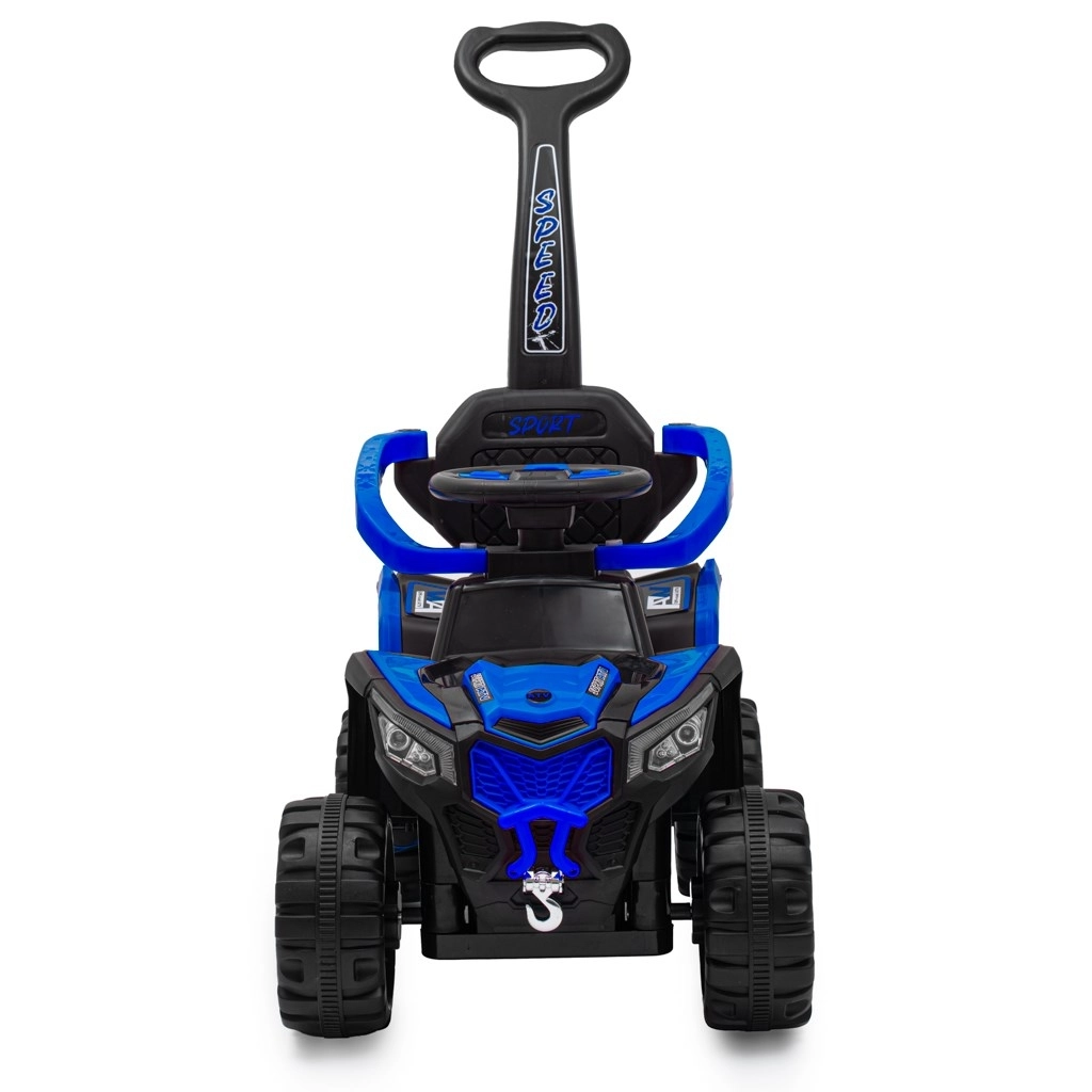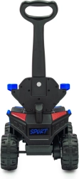 Ontdek de combinatie van plezier, veiligheid en stijl met de elektrische loopauto Baby Mix Ruggy. Dankzij de elektrische motor van 18 W rijdt het kind makkelijk weg met een druk op het gaspedaal, terwijl ouders de rit onder controle kunnen houden met de hoge duwstang. De massieve constructie en brede, terreinwielen garanderen stabiliteit, ook op oneffen ondergrond.