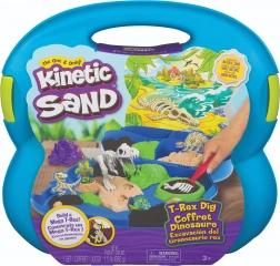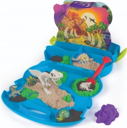 Ontdek de wereld van dinosaurussen met een draagbare set met kinetisch zand en een T‑Rex-skelet. Kinderen kunnen graven, vormen en hun eigen prehistorische scène creëren in een praktische bak. Kinetisch zand plakt niet, maakt niet vies en droogt nooit uit, ideaal voor creatief spelen thuis. Inclusief vormpjes, gereedschap, kartonnen achtergronden en figuren voor urenlang plezier en leren.