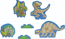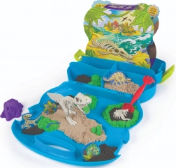 De set stimuleert fijne motoriek, verbeeldingskracht en zintuiglijke waarneming. In de set vind je veel accessoires: een plastic skelet, vormpjes, een graafgereedschap, kartonnen figuren van planten en dinosaurussen en een kleurrijk decor om een mini-dinosaurussenwereld te bouwen.