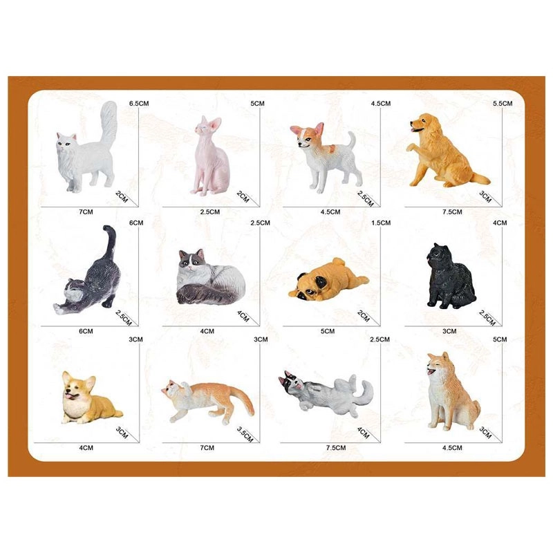 Ontdek een leuke en educatieve collectie figuurtjes van honden en katten met een kaartje en de soortnaam. Elk figuurtje is 5–8 cm groot en maakt kinderen vanaf 3 jaar blij. Er zijn twaalf varianten om uit te kiezen, verpakt per 36 stuks, prijs per stuk. Ideaal voor het leren herkennen van dieren en rollenspel. Educatief speelgoed, 12 varianten, gedetailleerde afwerking, veilig voor kinderen 3+.