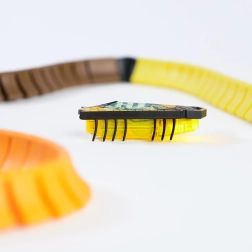 De HEXBUG NANO FLASH startset brengt snelle actie in zakformaat. Het transparant gele kevertje licht op, de vele veerkrachtige pootjes laten hem in alle richtingen bewegen en jij ziet hoe de kever instinctief door de baan navigeert. De flexibele wandgeleiding klik je eenvoudig in de connectoren en in een oogwenk maak je nieuwe routes en vormen – van bogen tot kronkelende corridors.