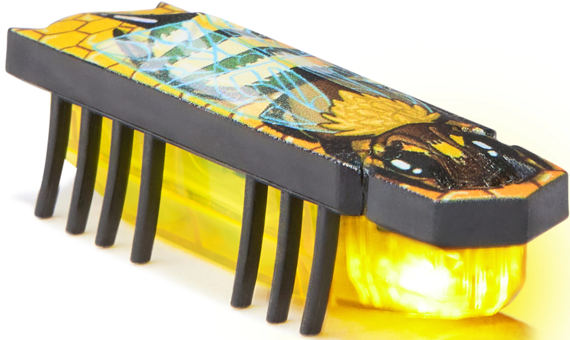 De microrobot met een transparant geel lichaam licht op en “rent” dankzij trillingen vlot over de baan en op vlakke ondergrond. Leuke lichteffecten nodigen uit tot spelen.