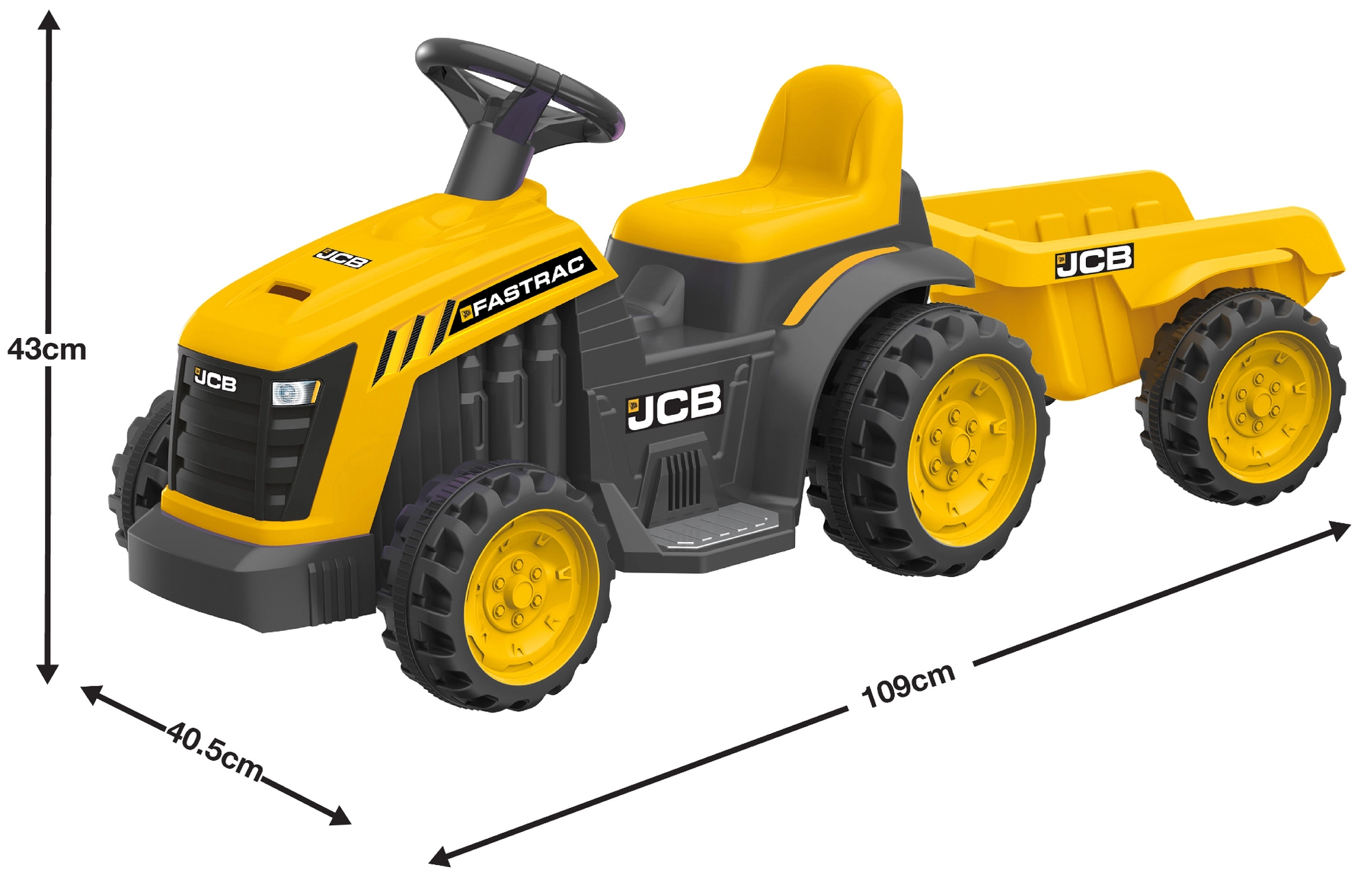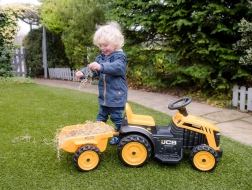 De elektrische tractor met aanhanger van EVO brengt volop actie voor kinderen, in de tuin en thuis. Dankzij de eenvoudige besturing en de lage maximumsnelheid is het rijden veilig en leuk. Het realistische JCB-design en de levendige kleuren motiveren tot actief spel, bevorderen balans en coördinatie en versterken de beenspieren.