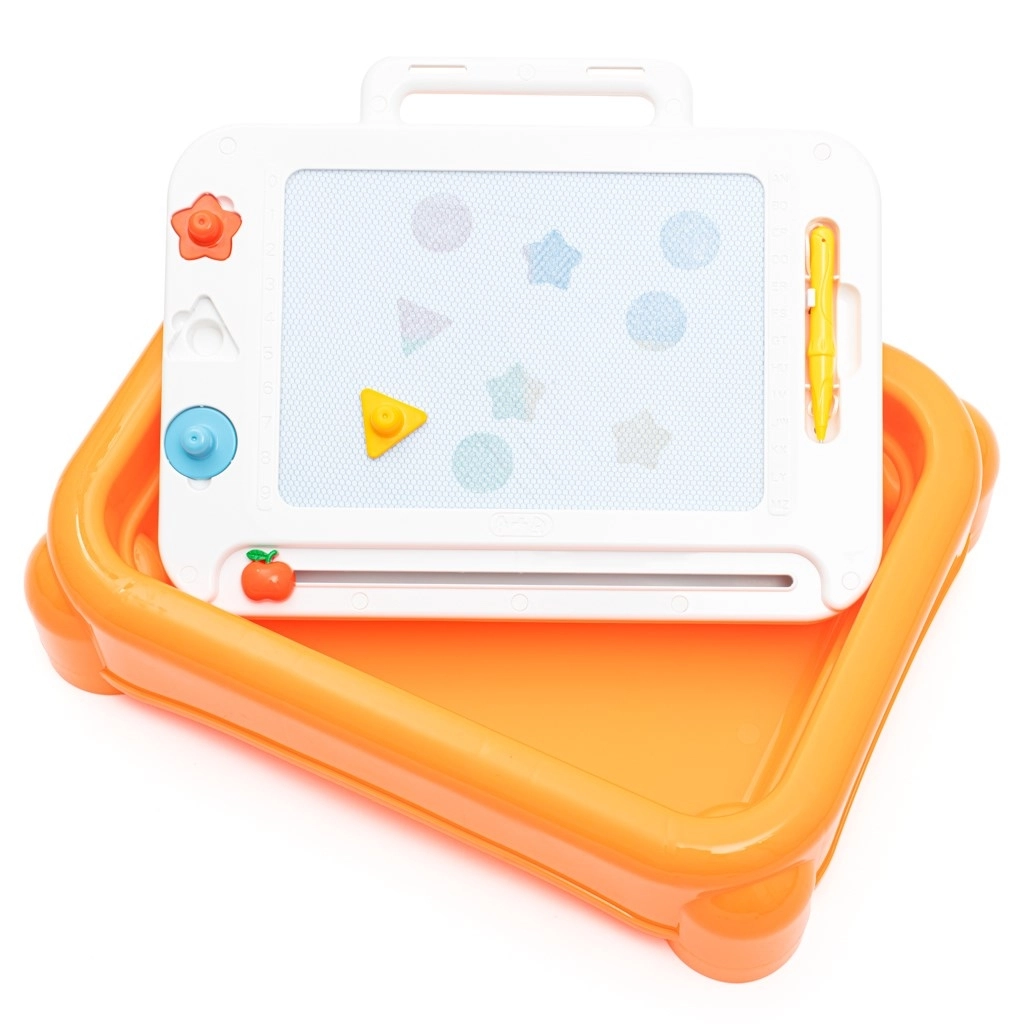 Teken en wis herhaaldelijk met behulp van de stylus en magnetische stempels. Ideaal om greep, oog-handcoördinatie en creativiteit te trainen.