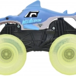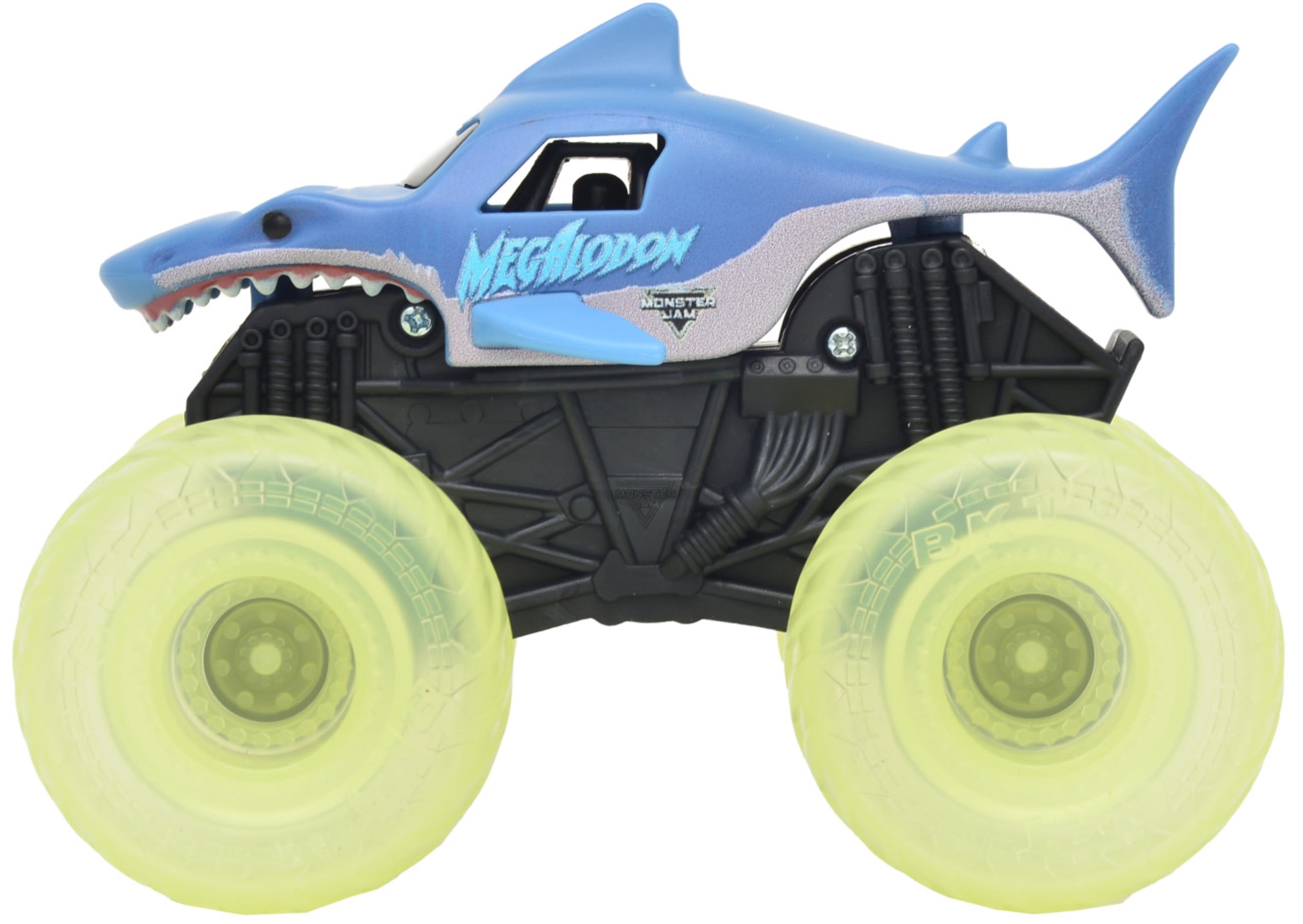 De populaire Megalodon, geïnspireerd op de prehistorische haai, valt op door realistische carrosseriedetails in blauw-grijze tinten, met vinnen en tanden die de agressieve look benadrukken. Grote, transparant getinte wielen en een robuust chassis zijn ideaal voor stunts thuis en onderweg.