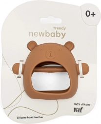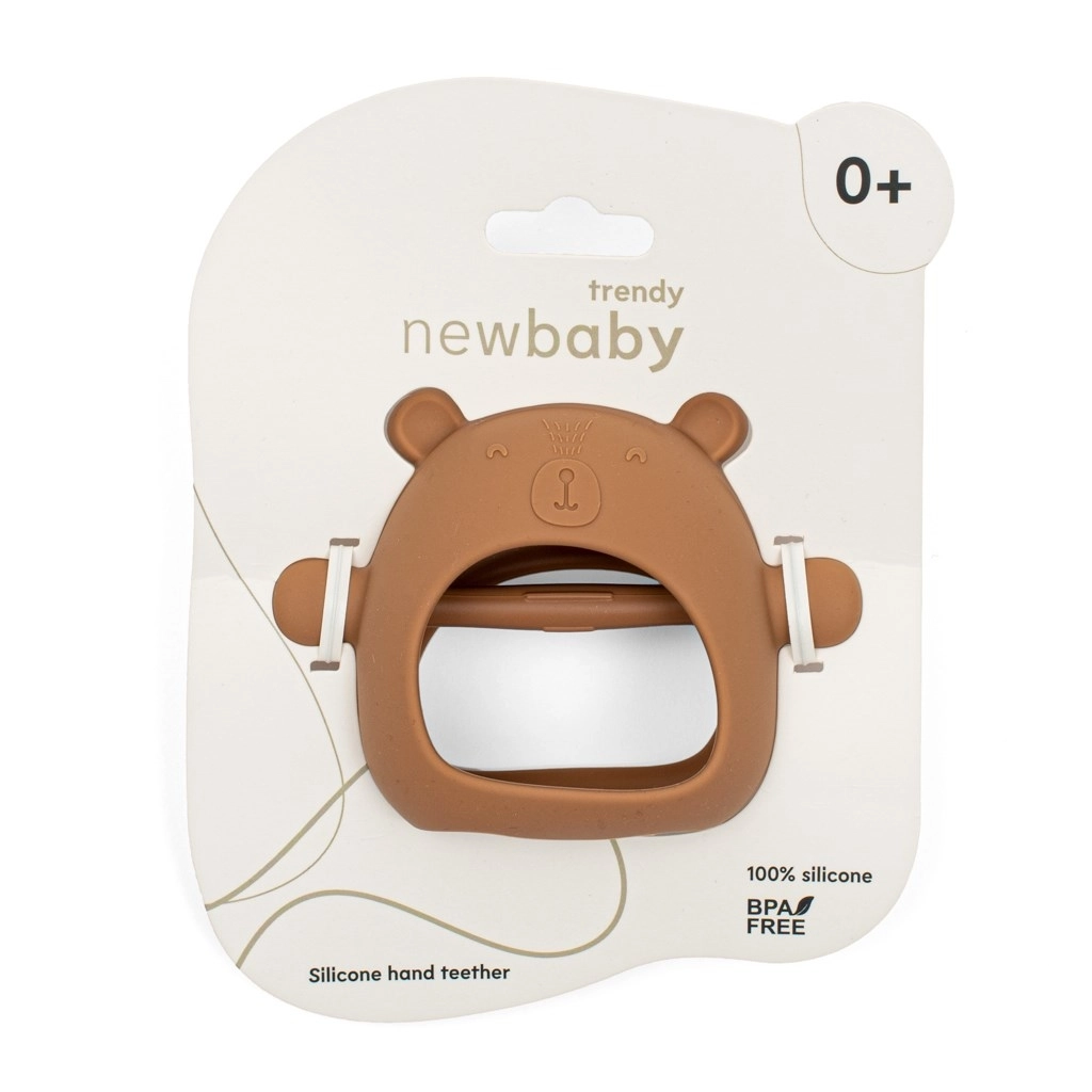 Stijlvolle siliconen bijtring uit de New Baby Trendy-collectie die veiligheid, functionaliteit en een elegant design combineert. De zachte karamelbruine kleur en de berenvorm passen perfect in kleine kinderhandjes. Ideale hulp bij het doorkomen van tandjes, vrij van BPA, in een luxueuze geschenkverpakking.