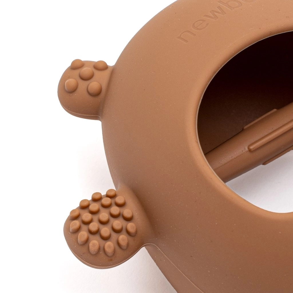 Siliconen bijtring voor om de hand beertje New Baby karamelbruin