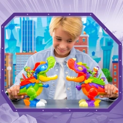 Druk op de staart en activeer de “chomping”-actie – de kaak gaat open en V‑Rex “slikt” de tegenstander in. Het kenmerkende T‑rex‑design in opvallende kleuren met futuristische details onderstreept zijn meedogenloze super‑schurkenlook.