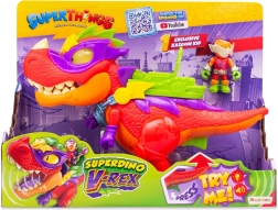 - Inhoud van de verpakking: 1× V‑Rex Superdino-figuur met licht en geluid, 1× exclusieve SuperThing (schurk), 1× exclusieve Kazoom Kid.