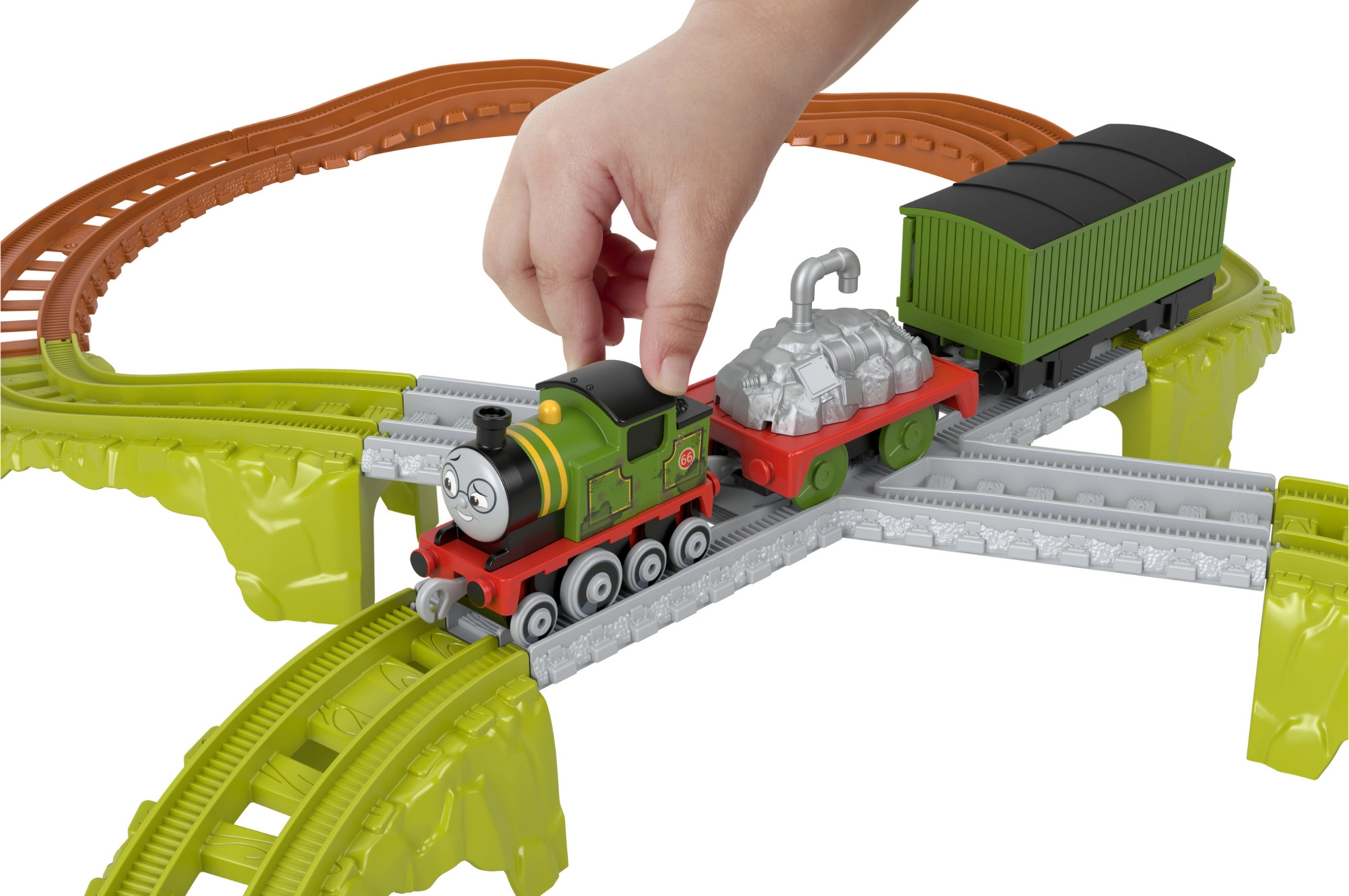 De set is ontworpen om gemakkelijk te combineren met andere plastic sporen van Thomas & Friends (niet compatibel met de houten reeks). Stevige plastic onderdelen, praktische plastic koppelingen en opvallende kleuren zorgen voor duurzaamheid en een aantrekkelijke look in de kinderkamer.