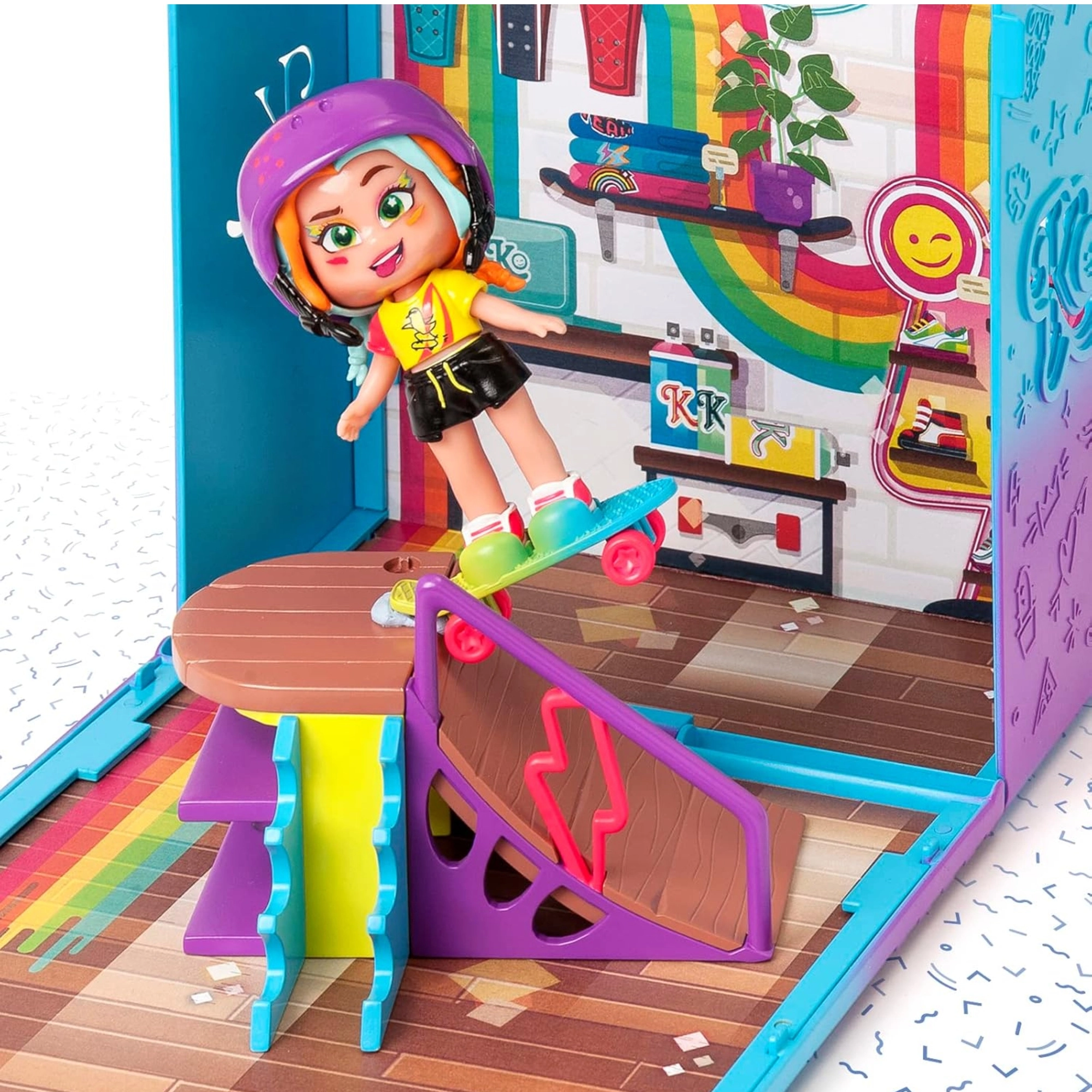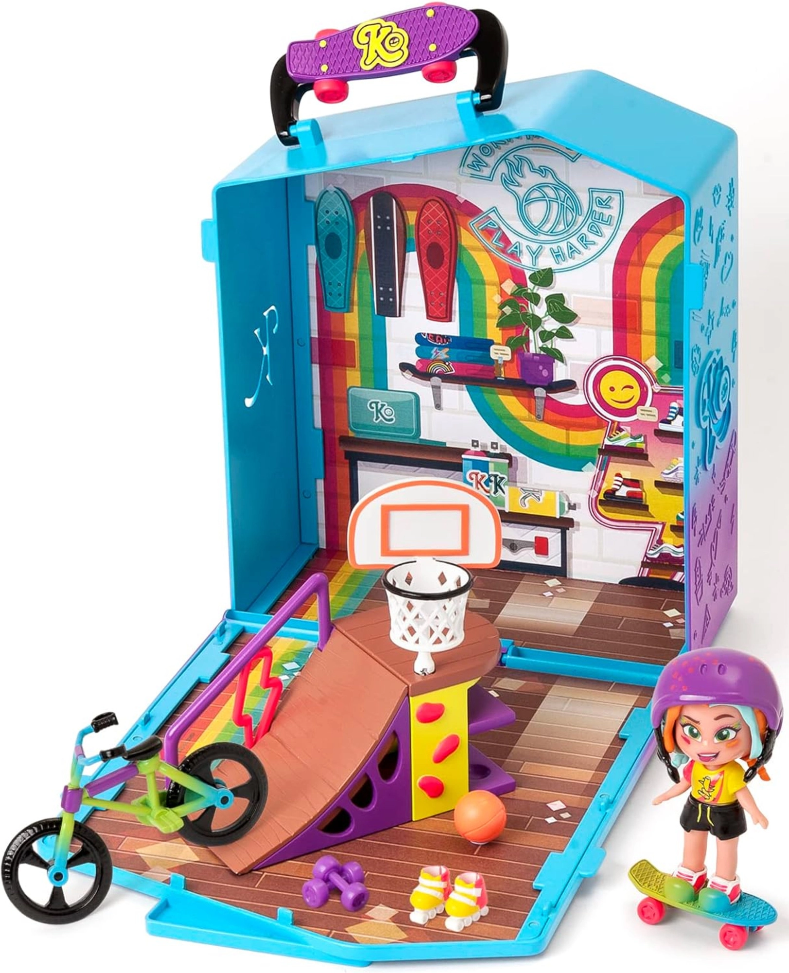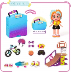 De KookyLoos-figuur van Magic Box brengt plezier, stijl en een uitgesproken persoonlijkheid in één. De exclusieve Lizzie is klaar voor sportieve avonturen – met beweegbare gewrichten, een mechanisme om de gezichtsuitdrukking te veranderen en toffe accessoires bedenken kinderen hun eigen verhalen vol actie en fantasie. De openklapbare koffer verandert in een mini-sportwinkel met fietsen, rolschaatsen en een skateboard.
