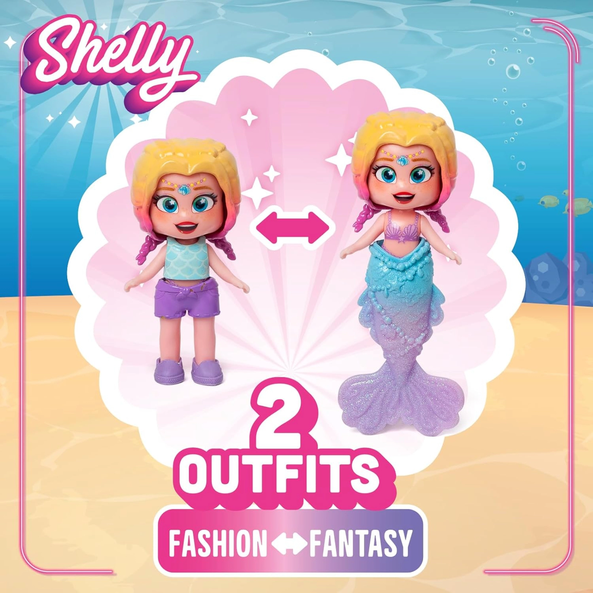 Duik in de onderwaterwereld met KookyLoos MERMAID – de schattige zeemeermin Shelly met beweegbare gewrichten, 3 gelaatsuitdrukkingen en een opvallende glinsterende staart. Open het strandhuisje voor zeemeerminnen, versier het naar wens en beleef eindeloze verhalen met haar trouwe vriend – de dolfijn.