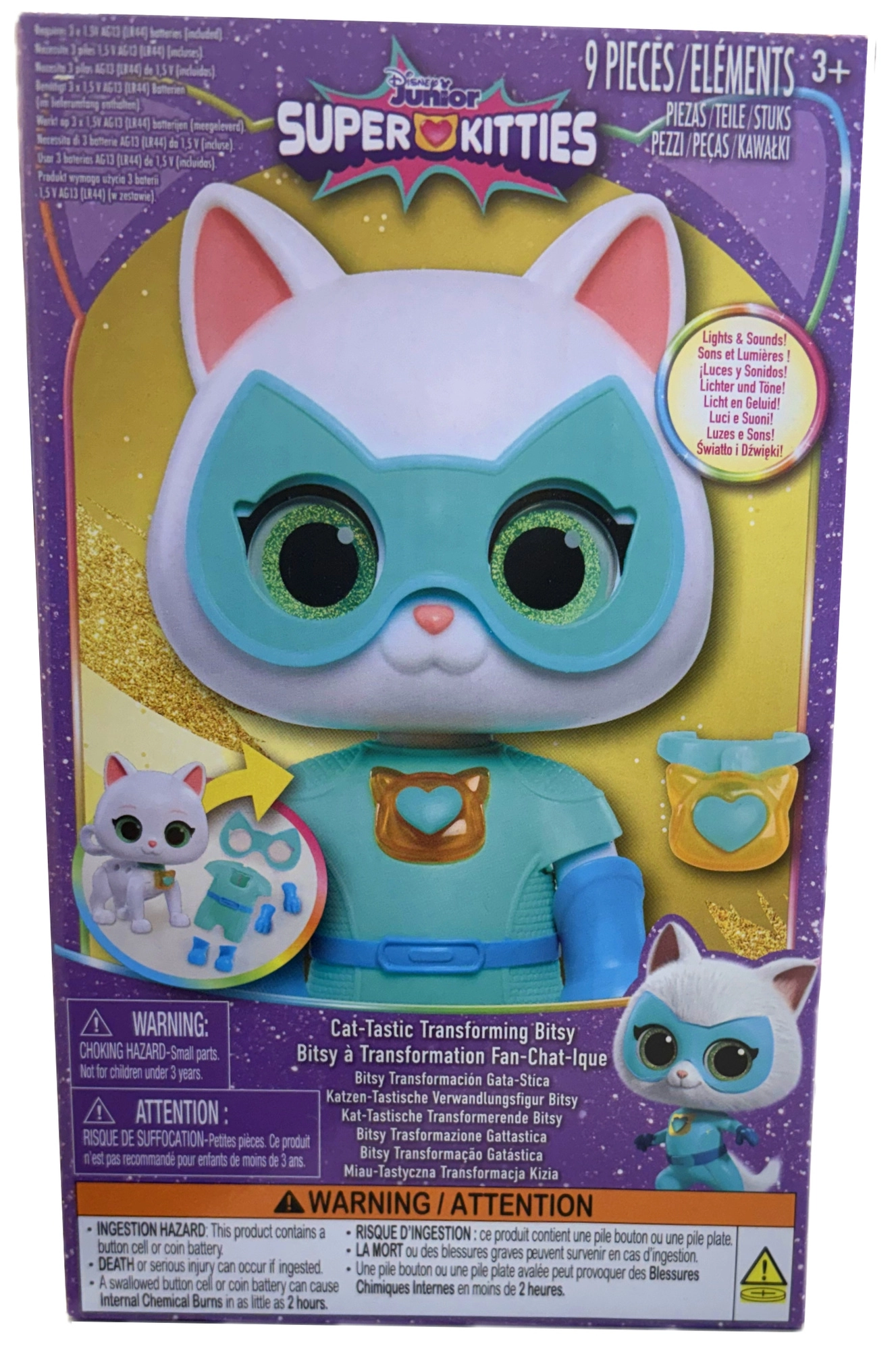 Ontdek de magie van de serie SUPERKITTIES met de interactieve Bitsy-figuur. Dankzij de opvallende kleuren, authentieke afwerking en de functie met licht en geluid dompelen kinderen zich moeiteloos onder in hun favoriete avonturen. De figuur past perfect in kinderhanden en kan overal mee naartoe.