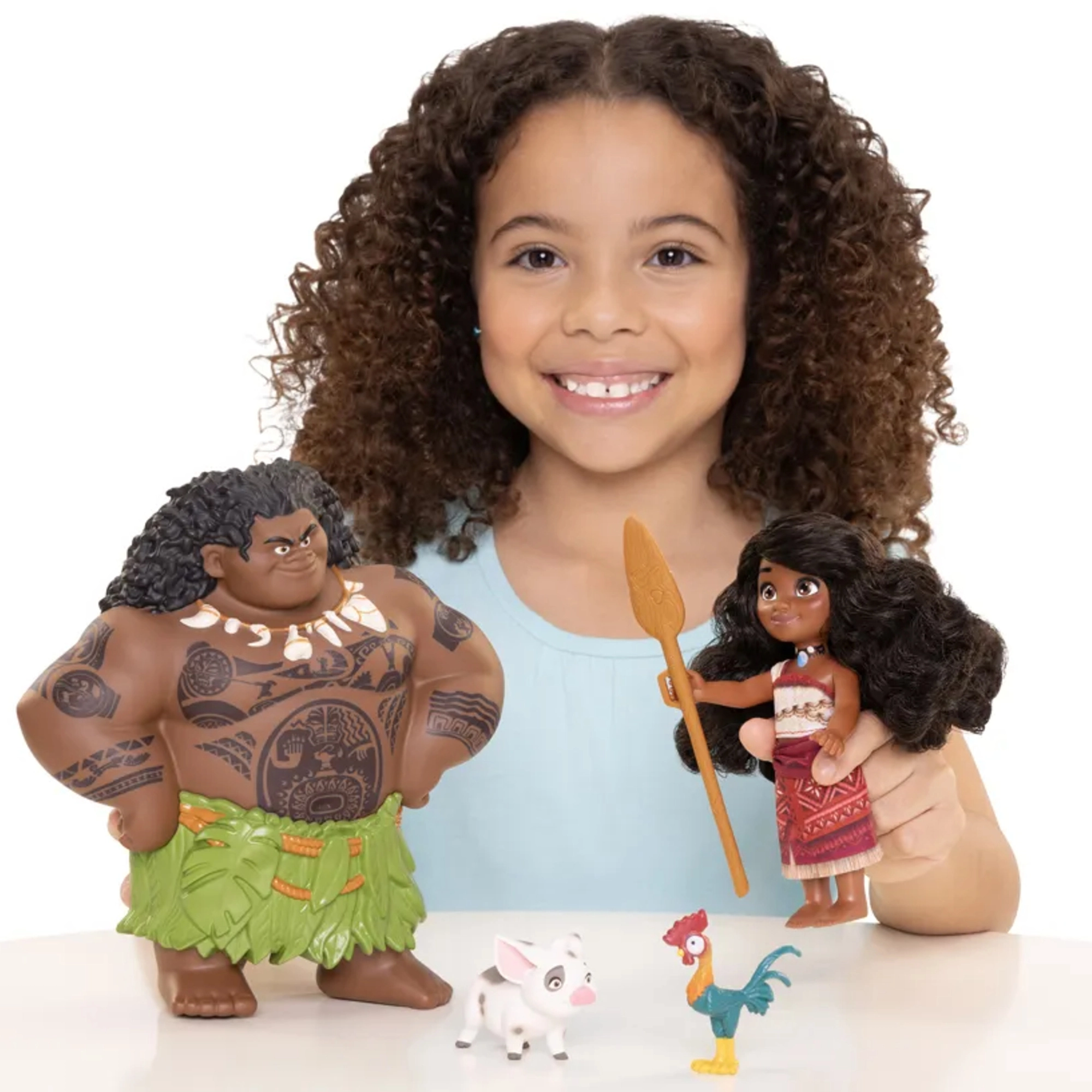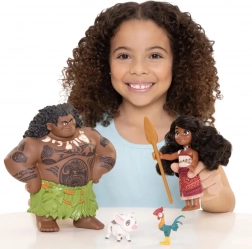 - Complete set personages: Vaiana, Maui, biggetje Pua en haan Heihei.