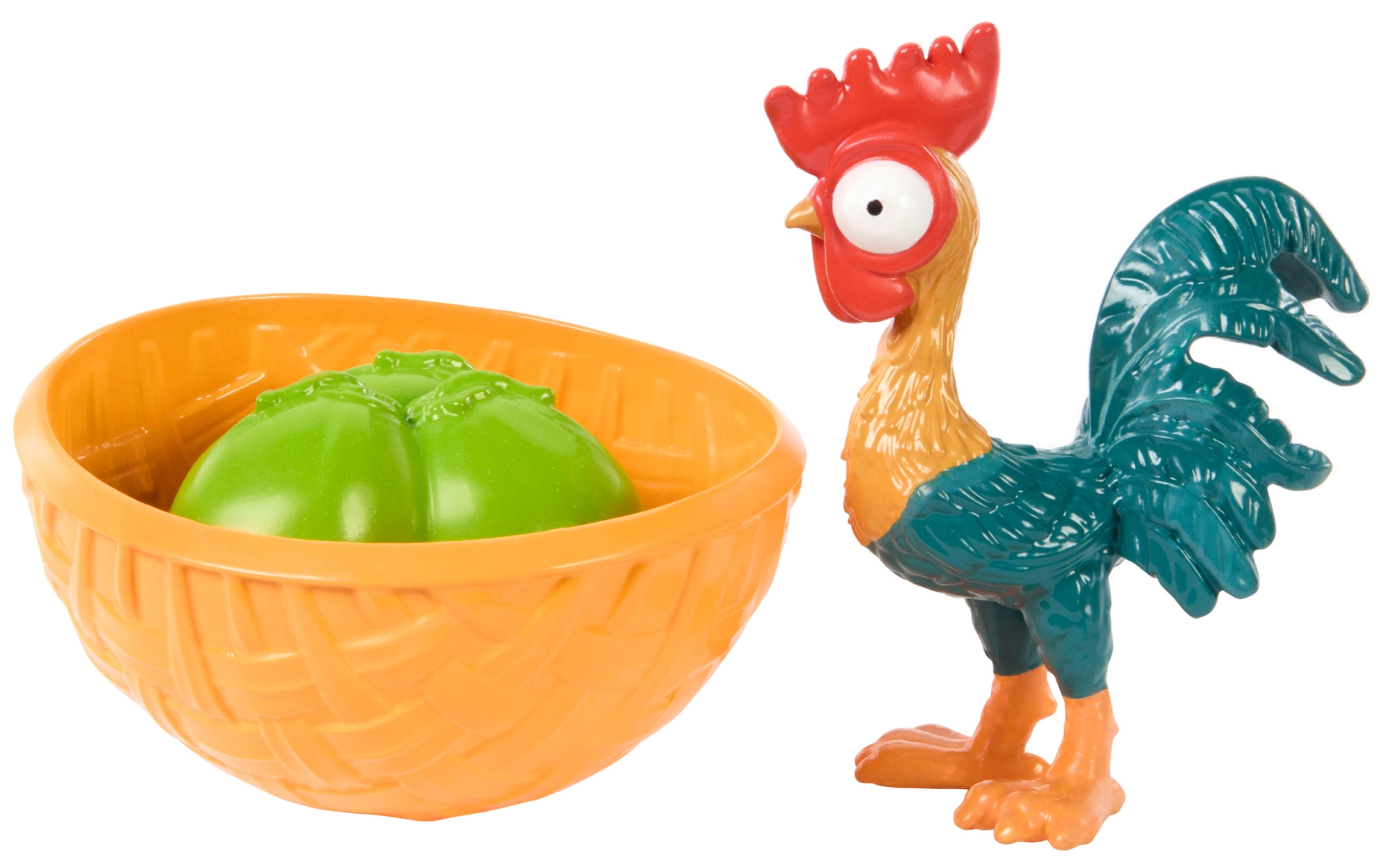 De schattige haan Heihei en het mandje met “fruit” vergroten de speelmogelijkheden – van boerderijscènes tot zeereizen.