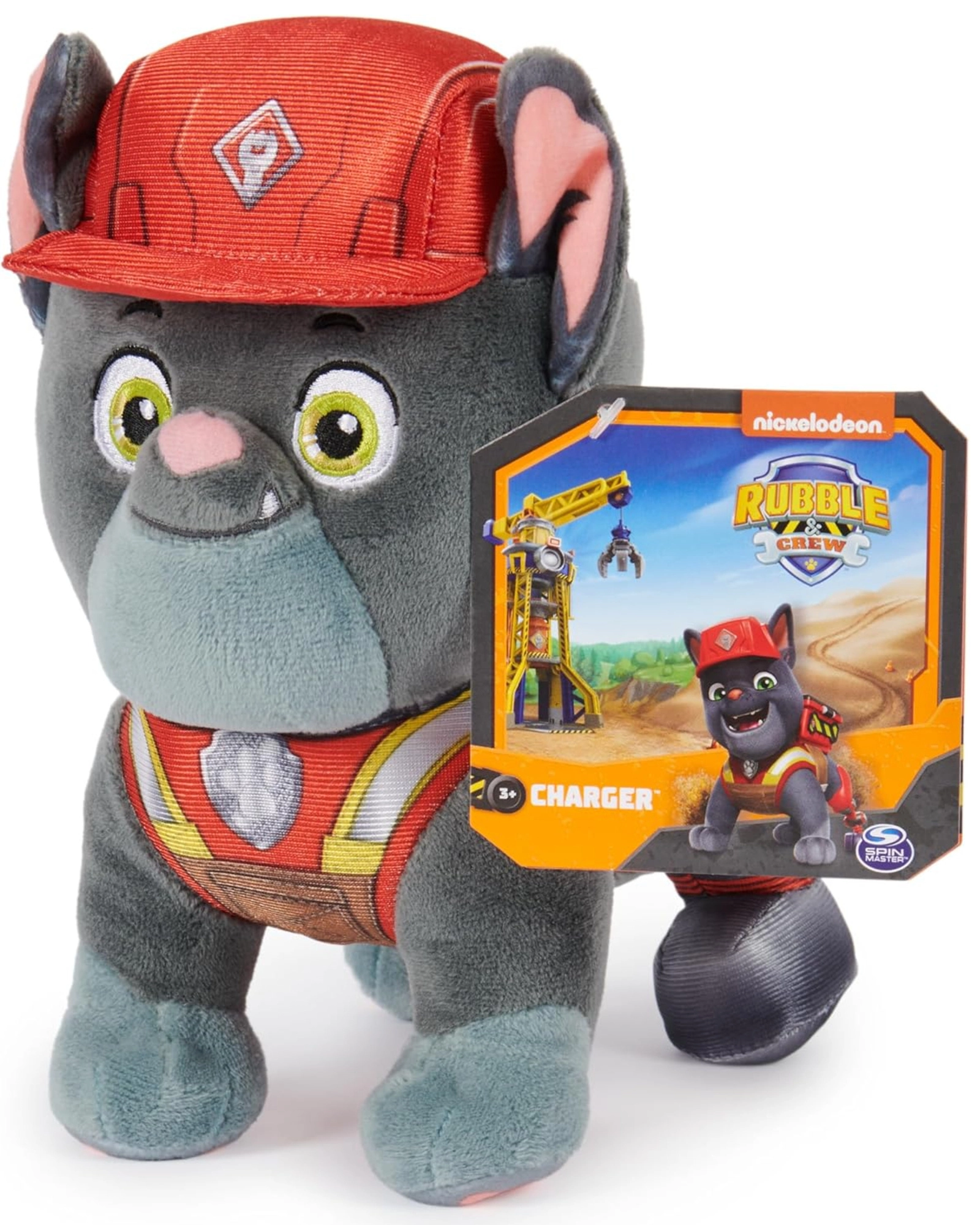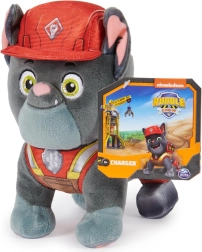 De pluche Charger is een energieke Franse buldog uit de serie PAW Patrol: Rubble & Crew, waar hij helpt met het vervoeren van zware ladingen. Dit hoogwaardig afgewerkte speelgoed van Spin Master vangt zijn look getrouw – van de rode helm en het vest met reflecterende elementen tot de zachte grijs-zilveren vacht en de grote geborduurde ogen.